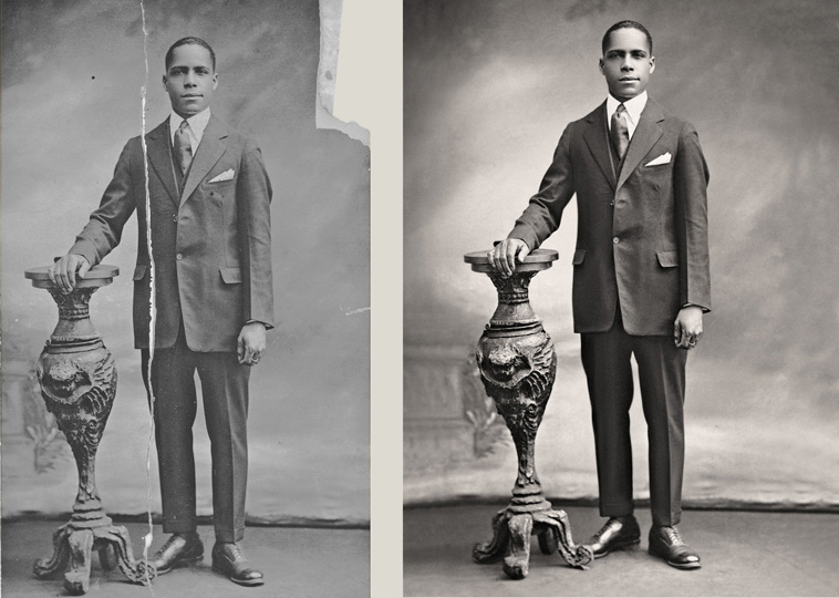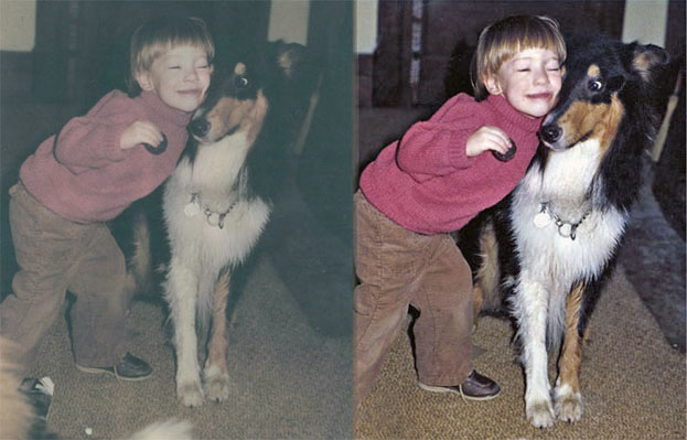 Your photo may be stained, yellow, dirty, scratched and may include mold or water spots. This is not just a photo, " It is YOUR VISUAL HISTORY, and it has great meaning to you"! Creative Professional Photo Restoration can retrieve your Cherished History.Professional Photo Restoration can rebuild missing elements.Our Atlanta Photo Restoration lab will provide you with quality Professional Photo Restoration of your damaged photos. The picture above was in very poor condition and required extensive professional photo restoration. The final results captured a moment otherwise lost in time. The picture below needed moderate professional photo restoration with color correction and an adjustment in contrast. Photo restoration allowed this image of a small boy and collie to come to life.