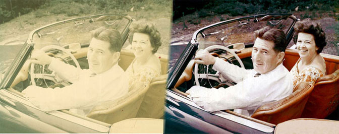 The picture above is a landscape of Collie overlooking cliffs at Lake Minnewaska. Moderate professional Photo Repair was needed with color correction. The Photo below presented numerous problems resulting from fading and being torn in half. Photo Restoration helps in preserving the memories that mean so much to each of us.