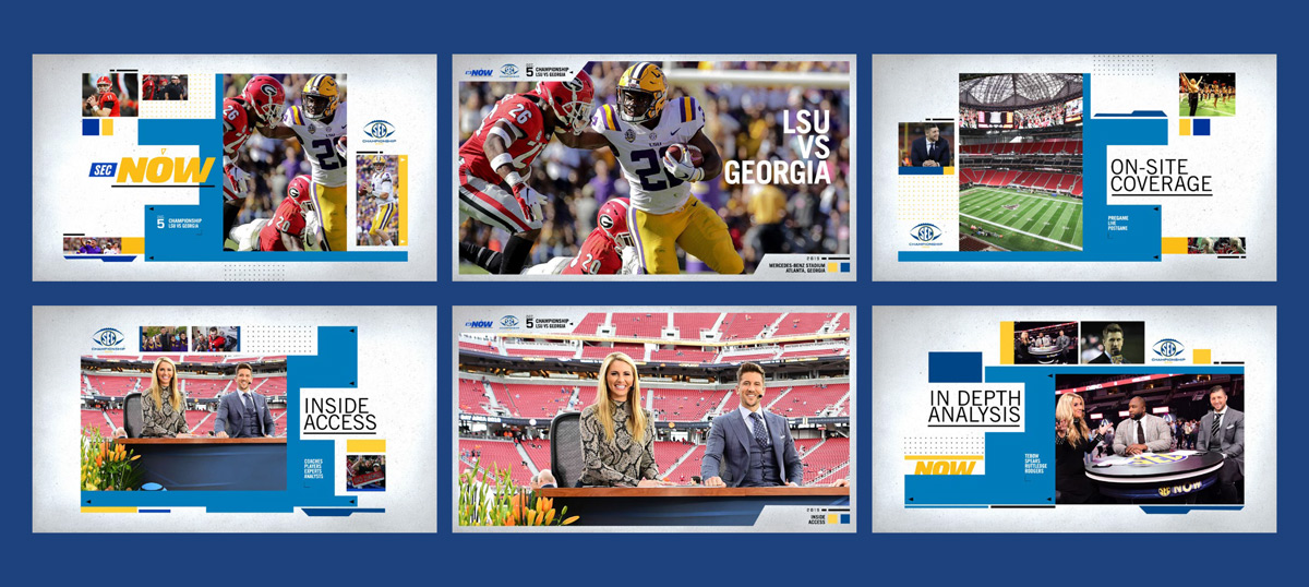 SEC Network's flagship program SEC NOW was looking for a new television package look for all upcoming SEC championship broadcasts. I developed the look and feel, sourced plus edited the music track, and finally worked with production to achieve the correct animation style.