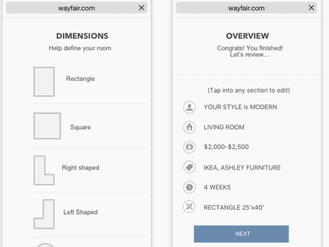 Wayfair houses an extraordinary amount of items in their catalog. Have you ever heard of decision paralysis? This is a prime example. Designer Services was crafted to help facilitate that process for the user who wants professional guidance. The style quiz asks about your current space, your aspirations, and your aesthetics; then pairs you with a professional interior designer.