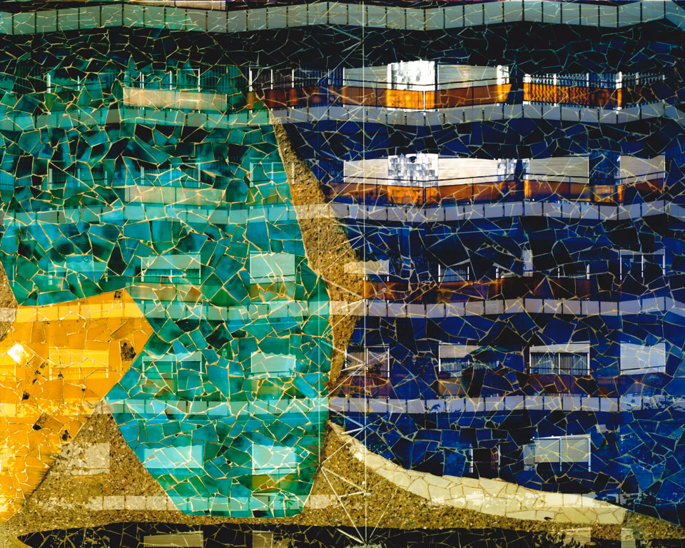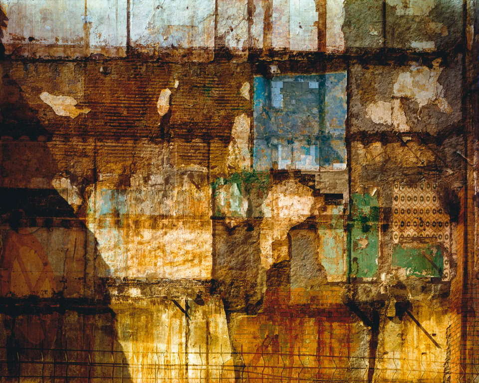 Extrapolating the aerial framework of the grid, the visual narrative derives its structure, continuity and meaning from the interpretation of the grid on vertical surfaces. The result is a mosaic of fascinating richness, where combinations of textures form new layers of meanings.