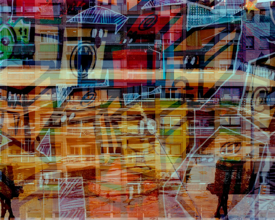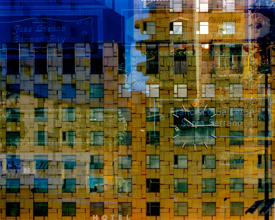 Cada una de las últimas impresiones de las distintas series consta de entre dos y cinco imágenes individuales superpuestas en capas con exposiciones múltiples, cada una de ellas realizadas en el mismo lugar y a la vez sobre una película en placas de 5 x 4 pulgadas. Cada imagen final sobrepone distintas estructuras cuadriculadas y detalla varios siglos del pasado. De este modo se colapsa el tiempo en un léxico fotográfico único. Las imágenes finales se saturan a través del color, detalles y patrones que salen a flote en la superficie urbana de Barcelona, una de las ciudades más grandes del Mediterráneo, en el intento de realizar uno de los mayores experimentos urbanos jamás existidos.
