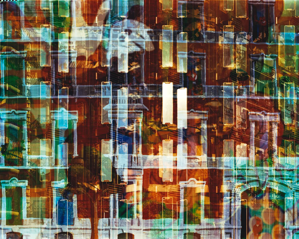 Each final image overlays distinct grid structures and details centuries or decades apart, collapsing time in a truly unique photographic vocabulary.