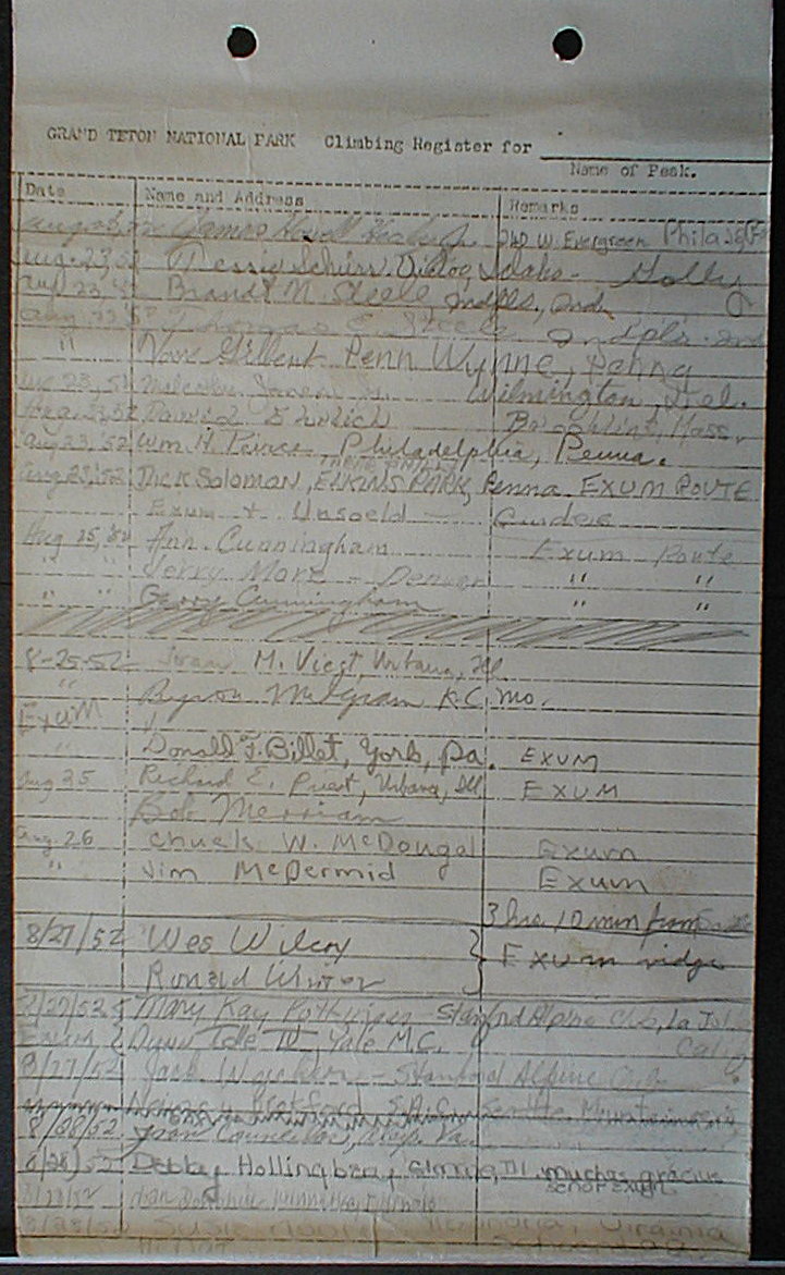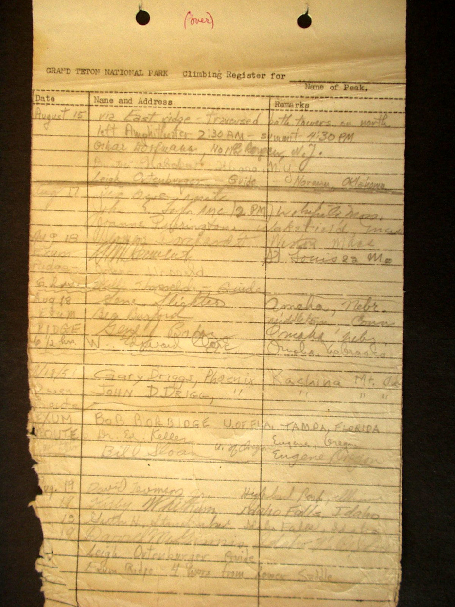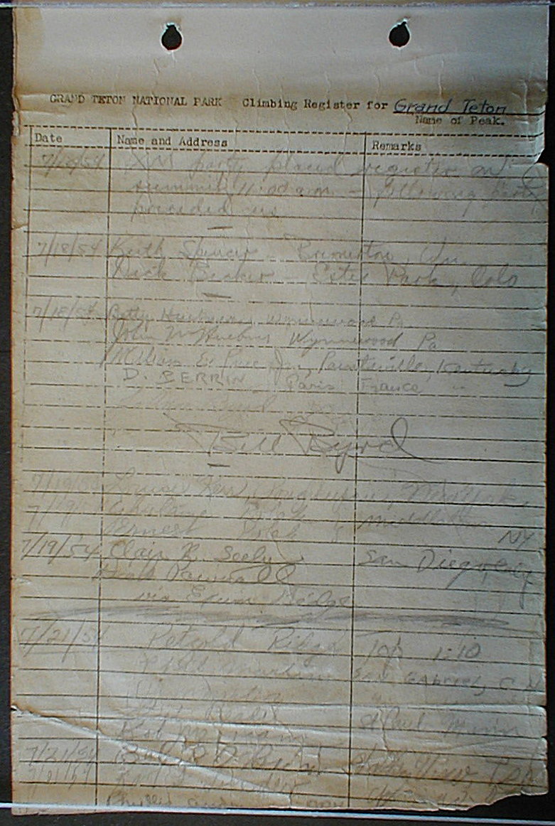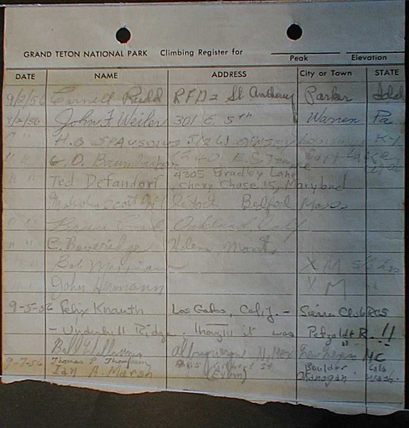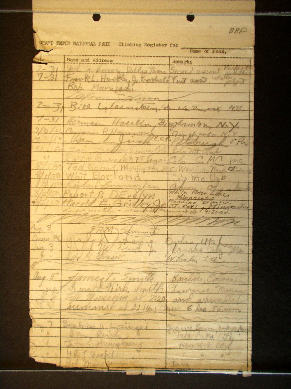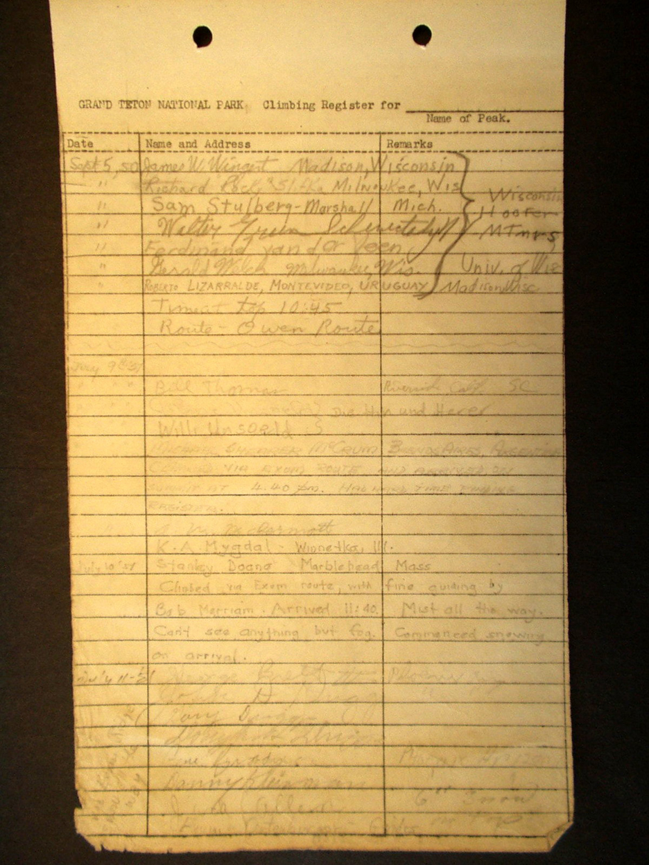 Teton Summit Registers