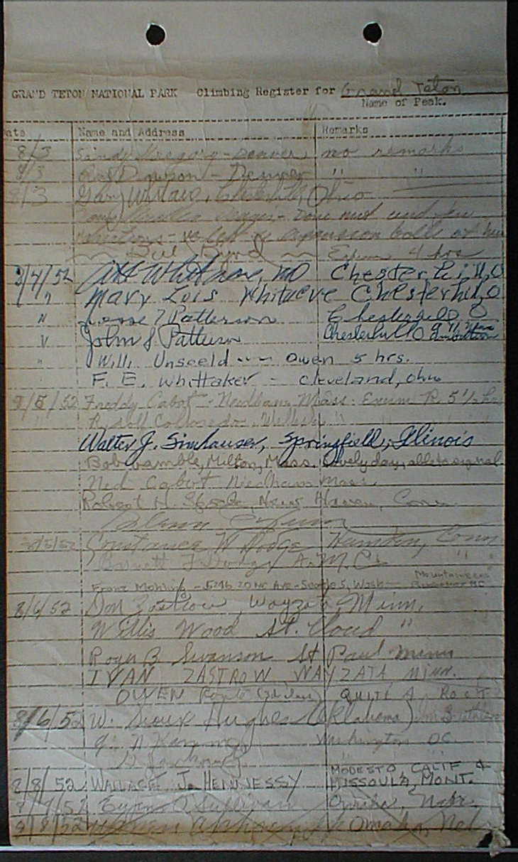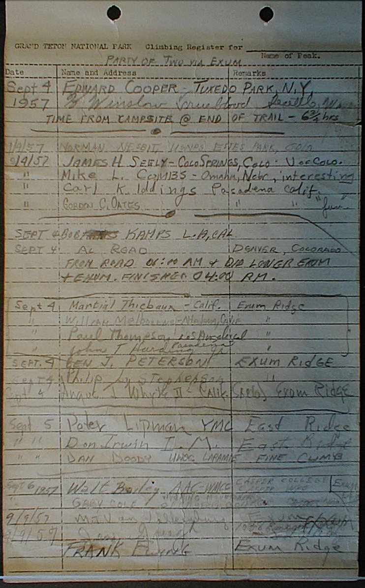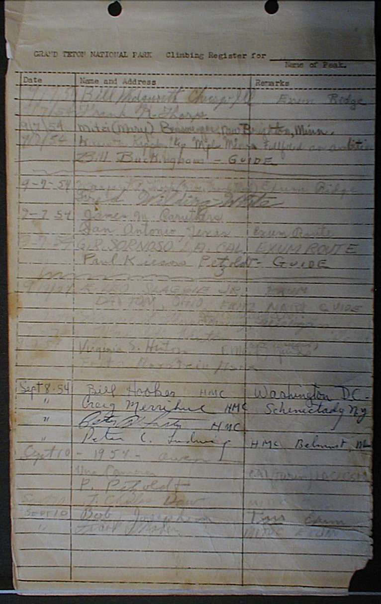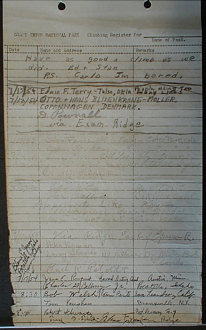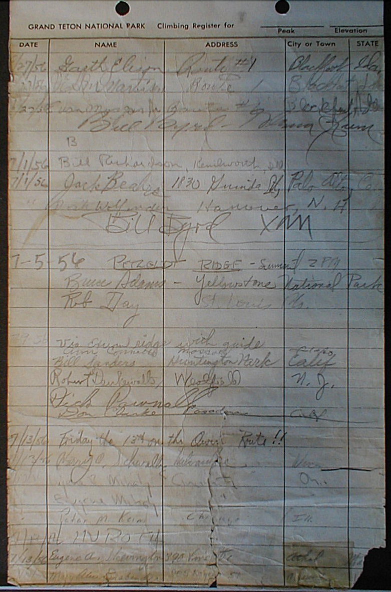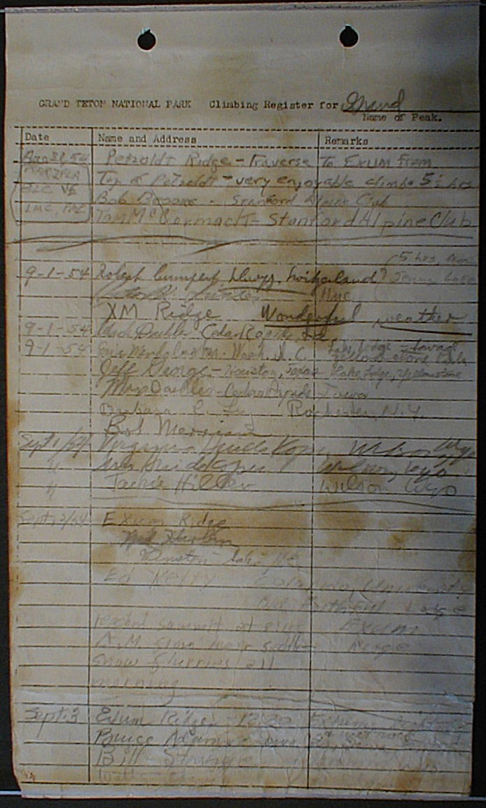 Teton Summit Registers