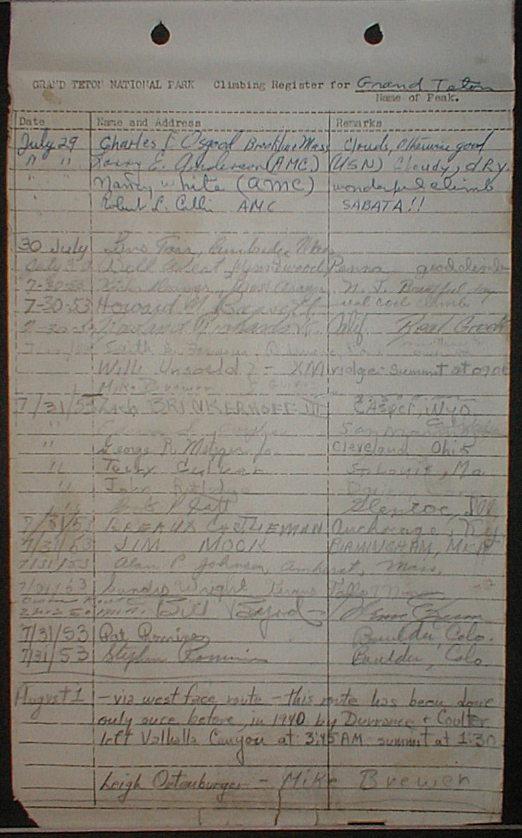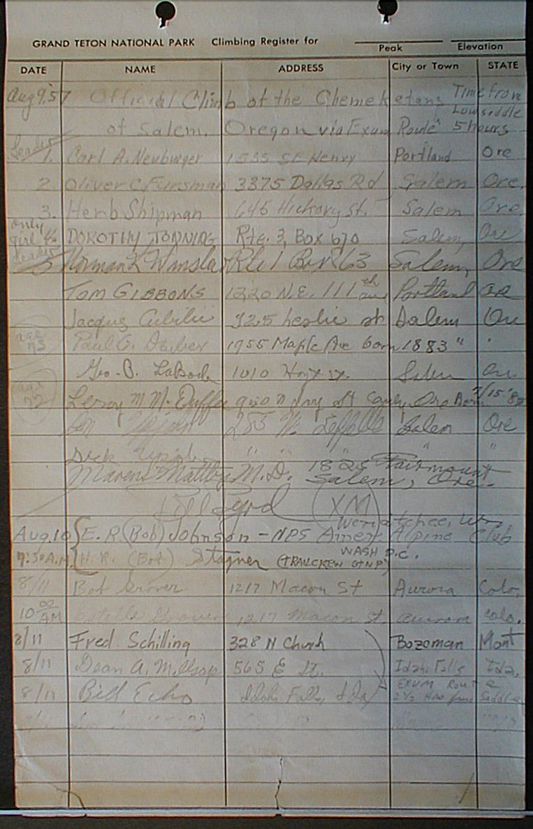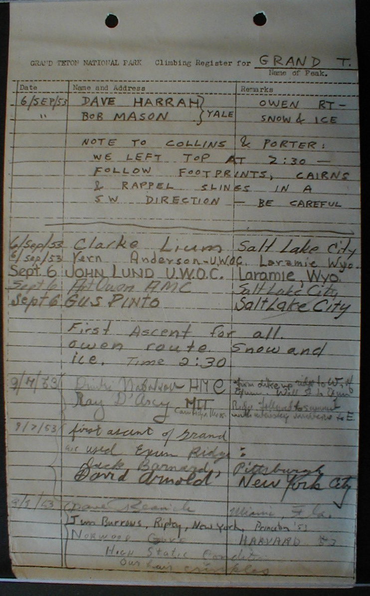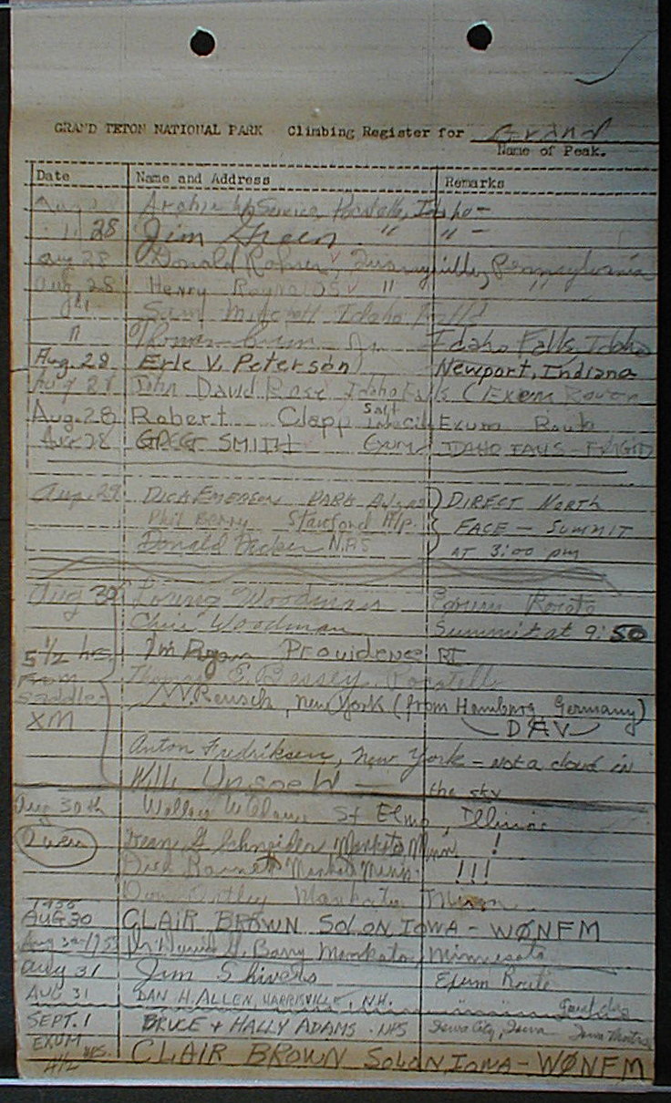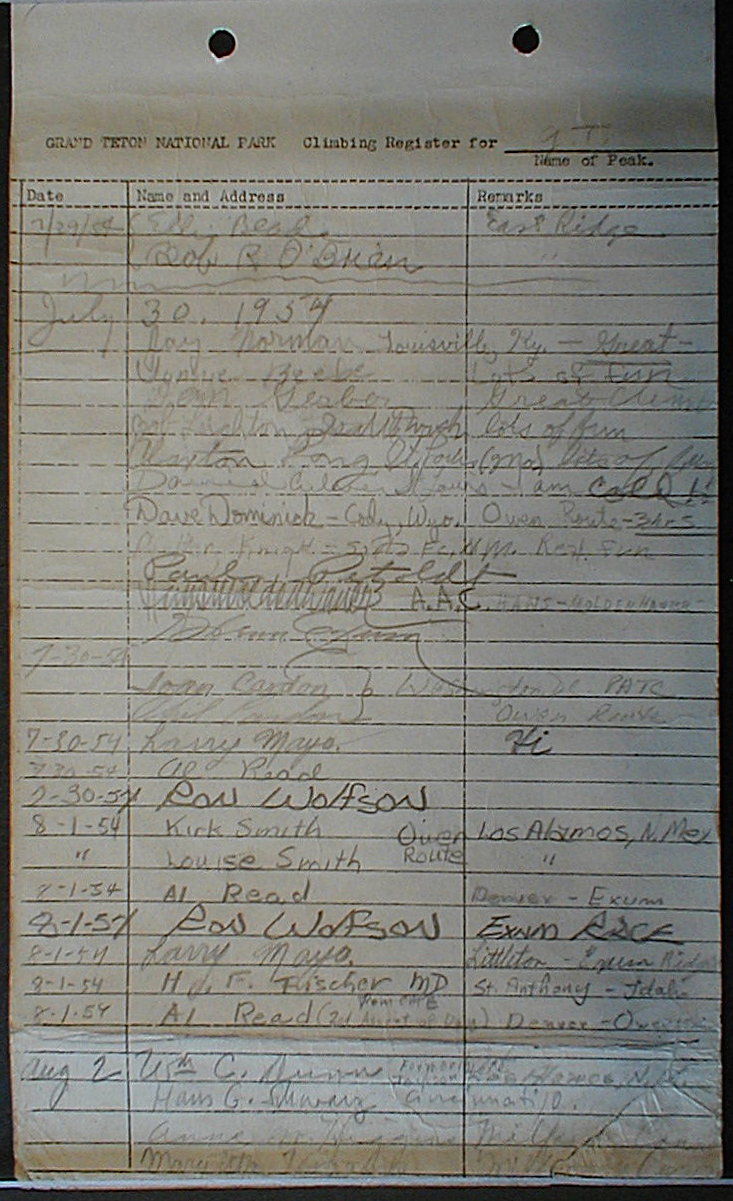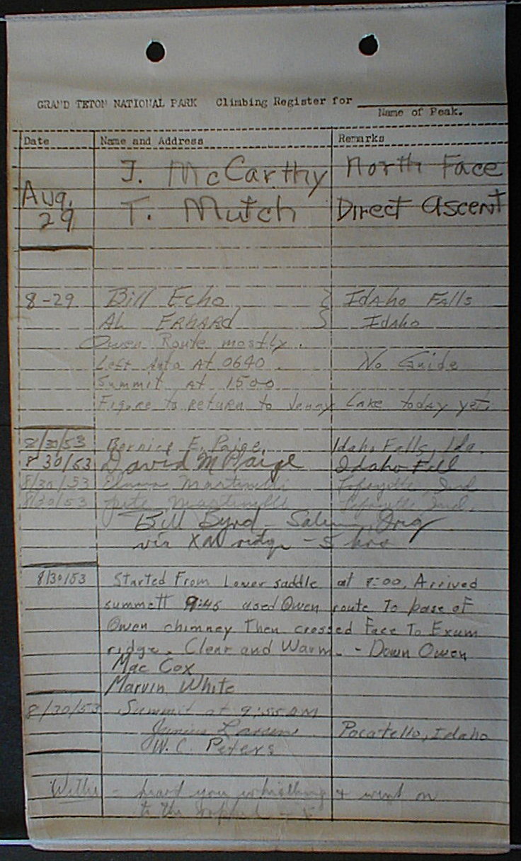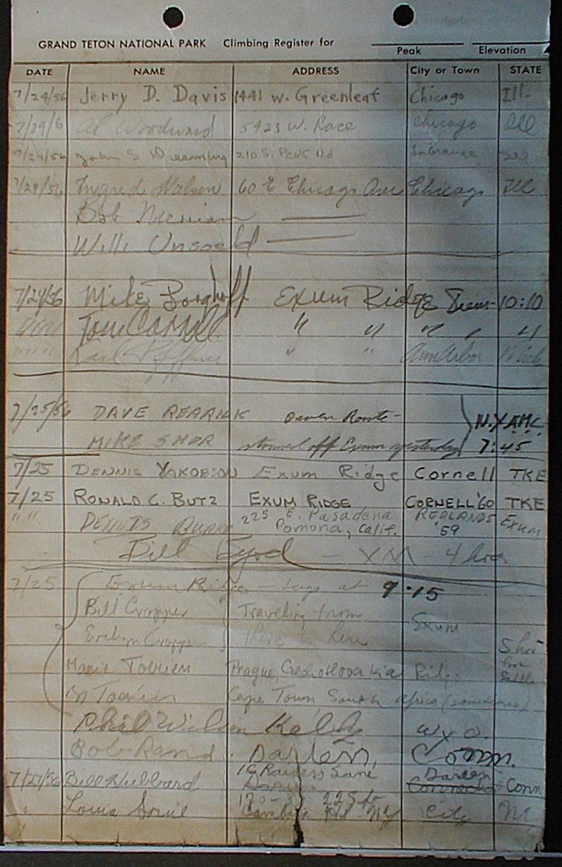 Teton Summit Registers