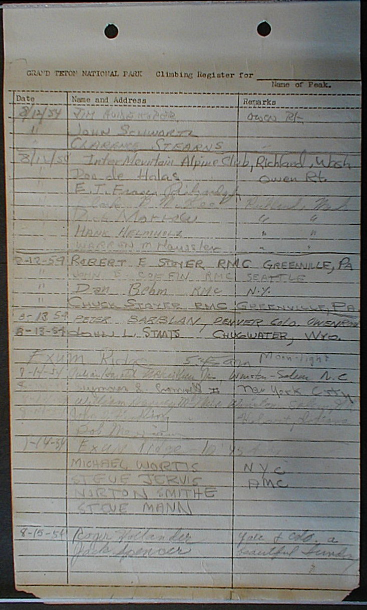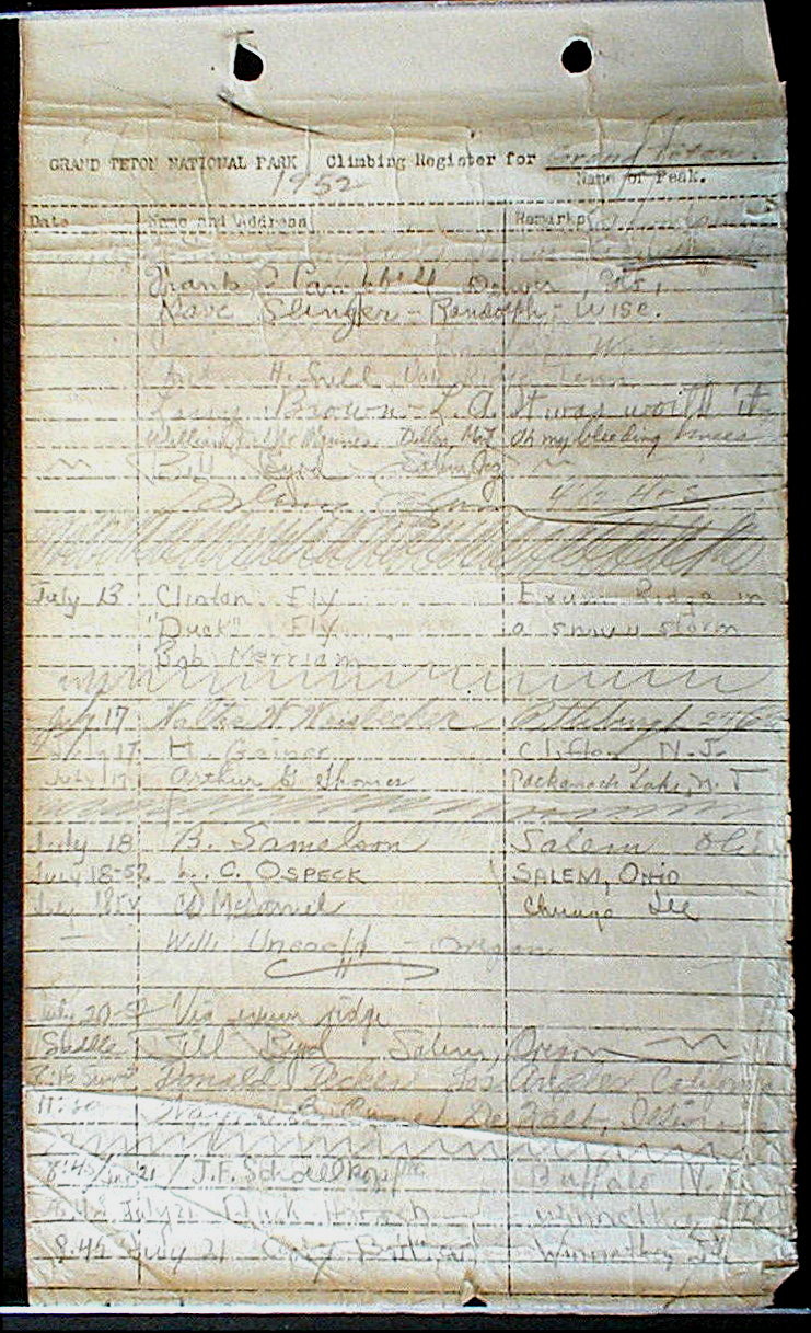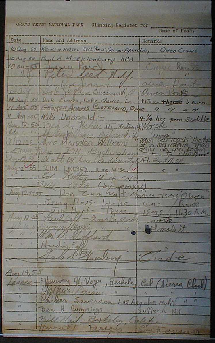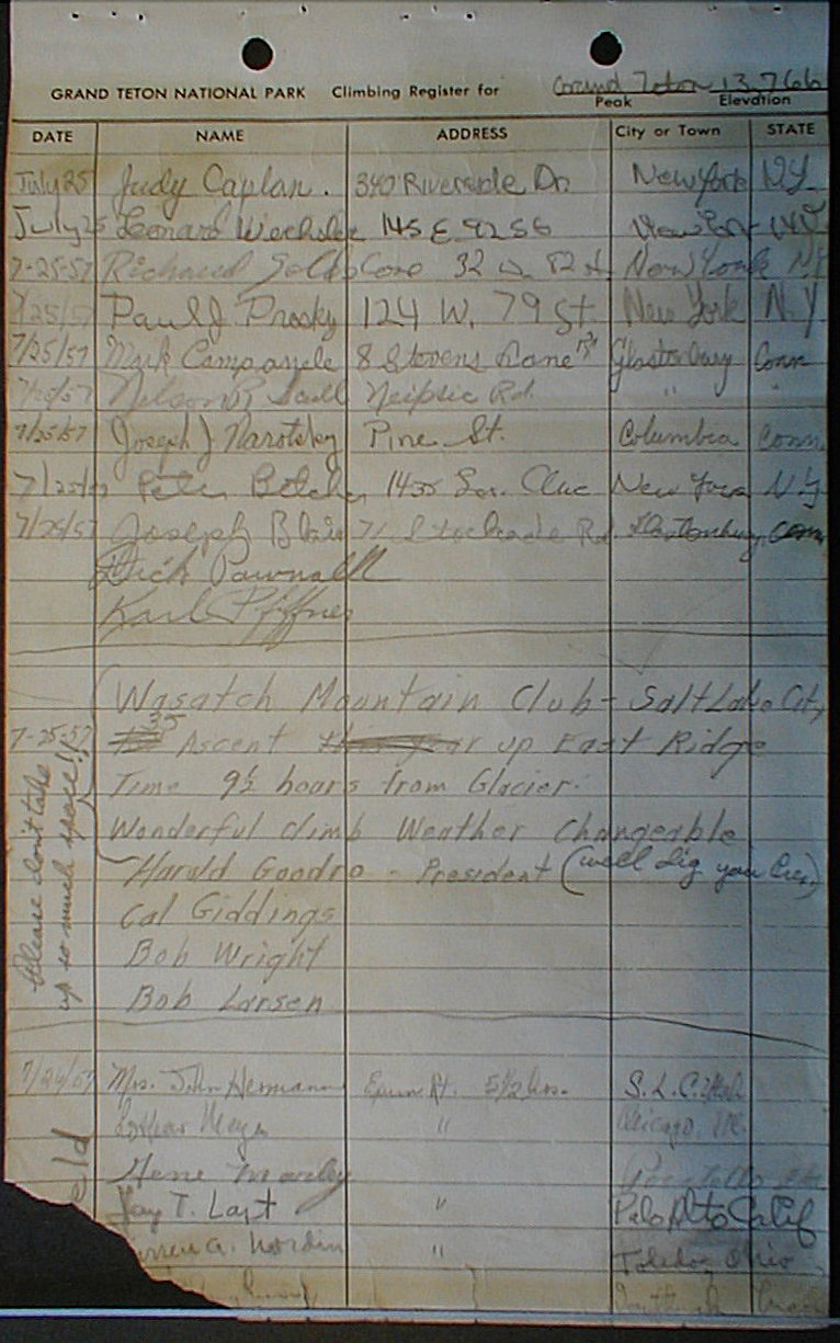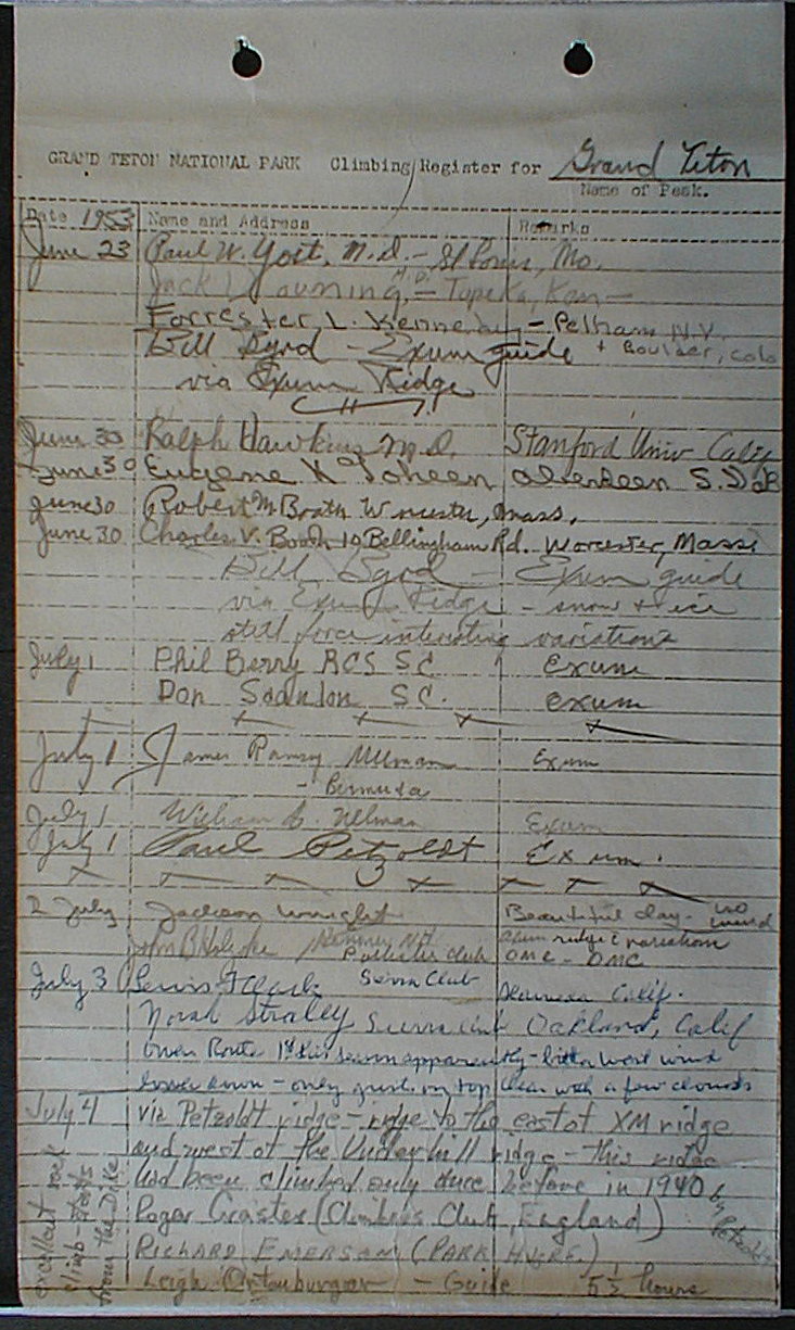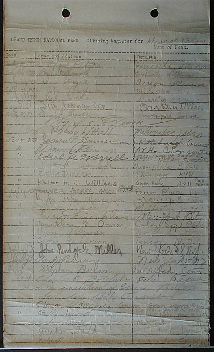 Teton Summit Registers