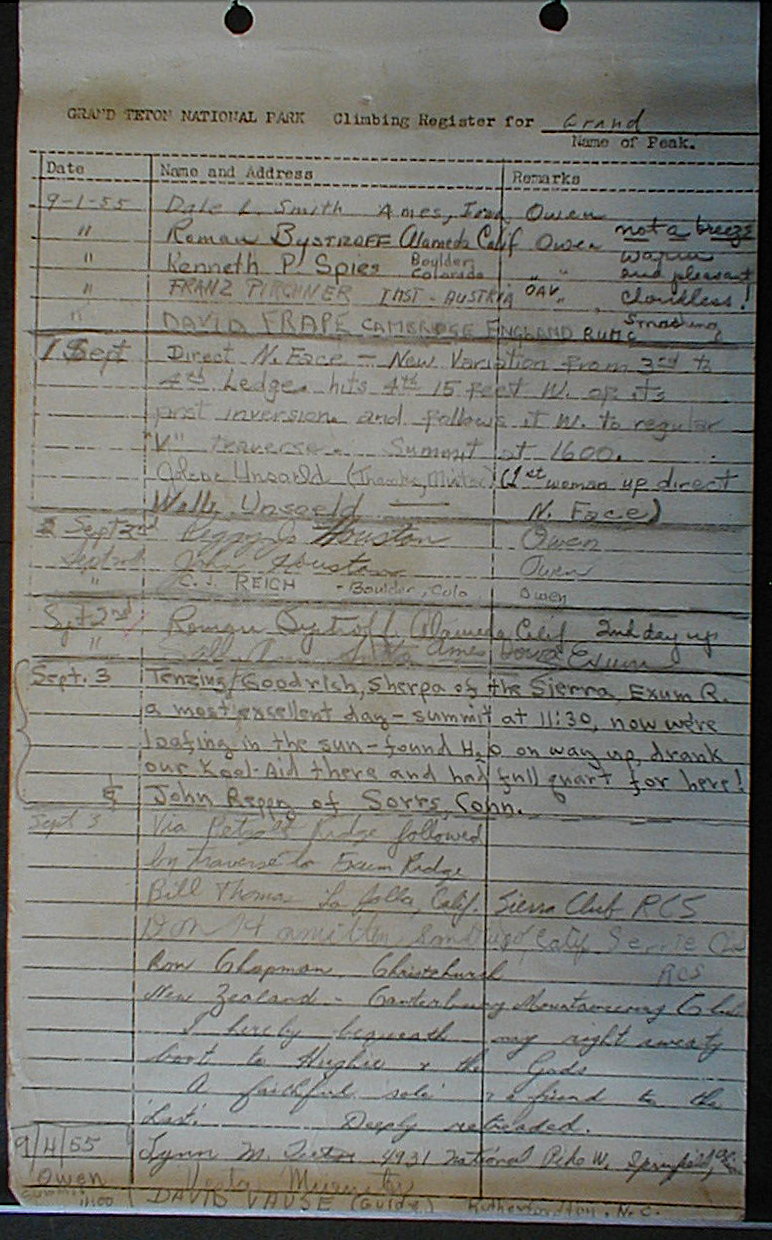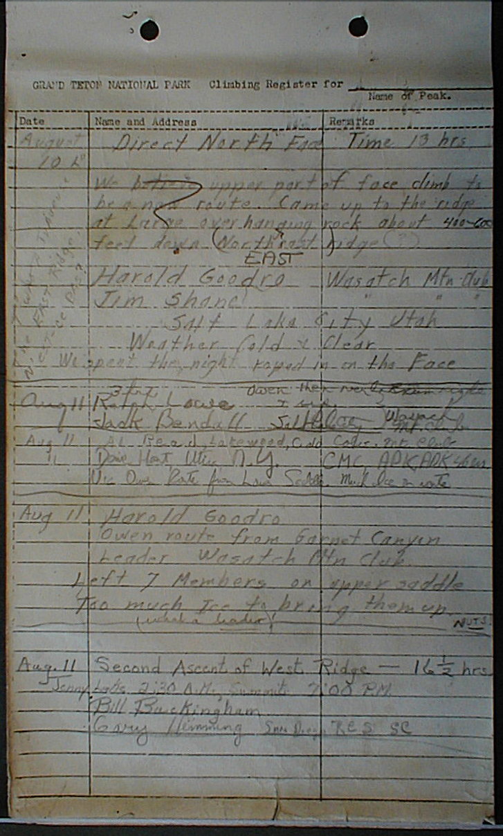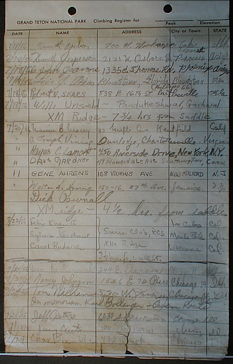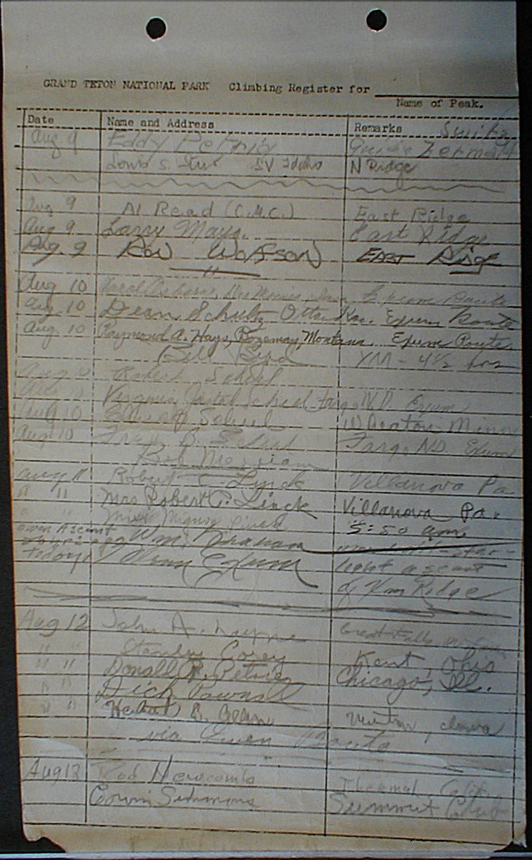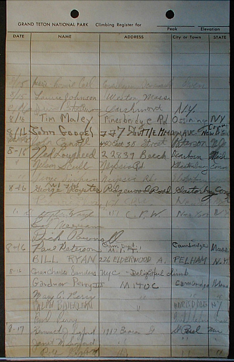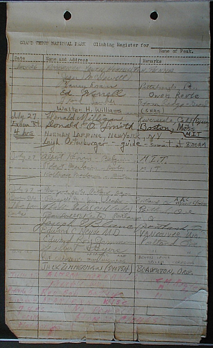 Teton Summit Registers