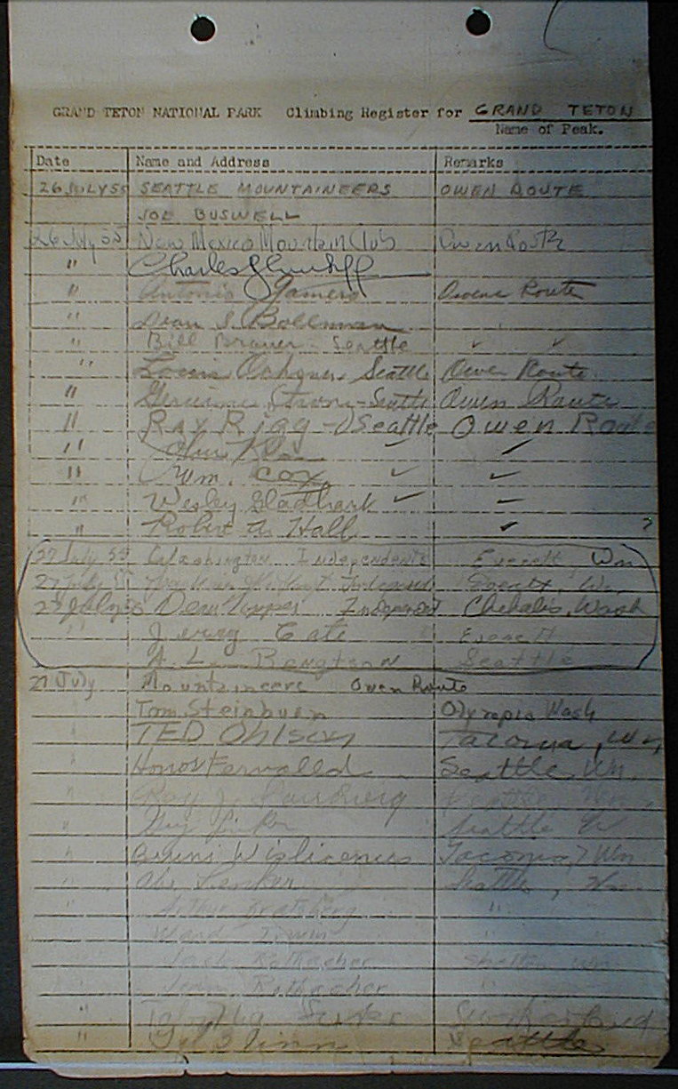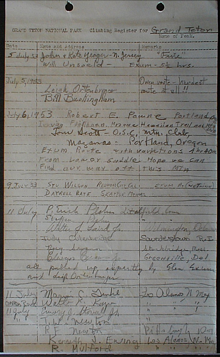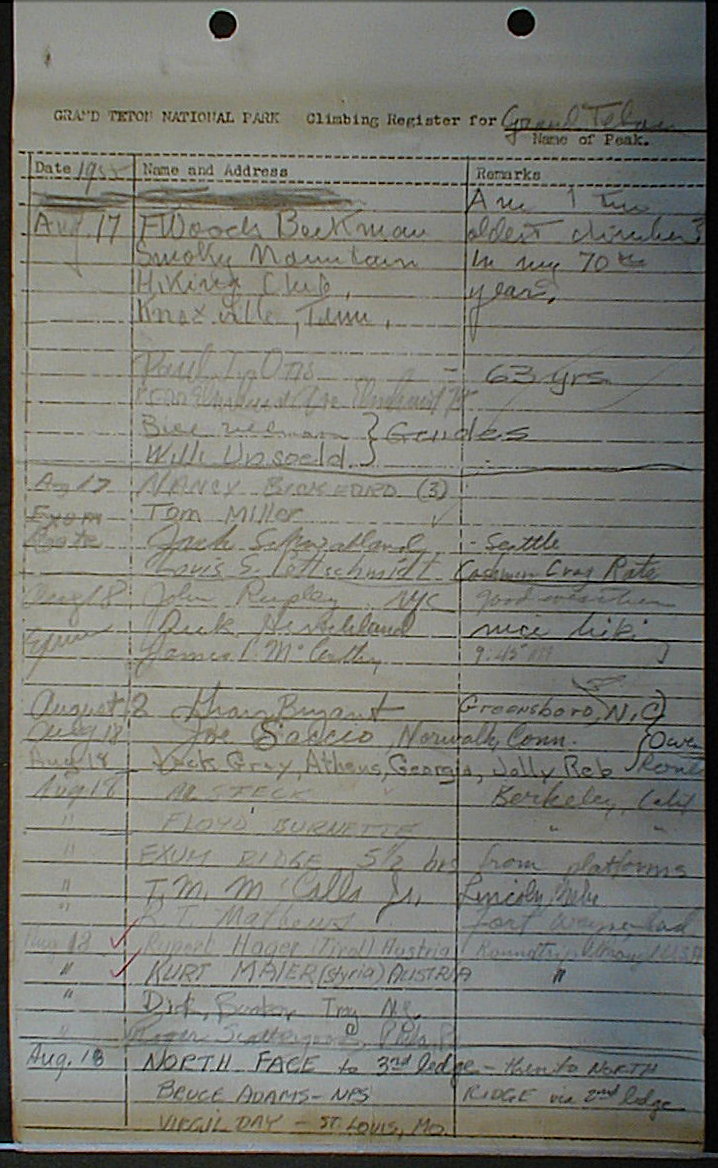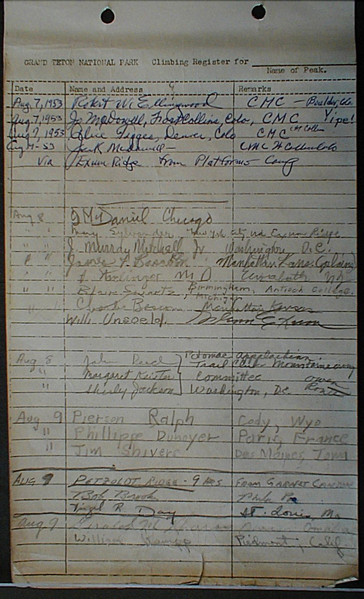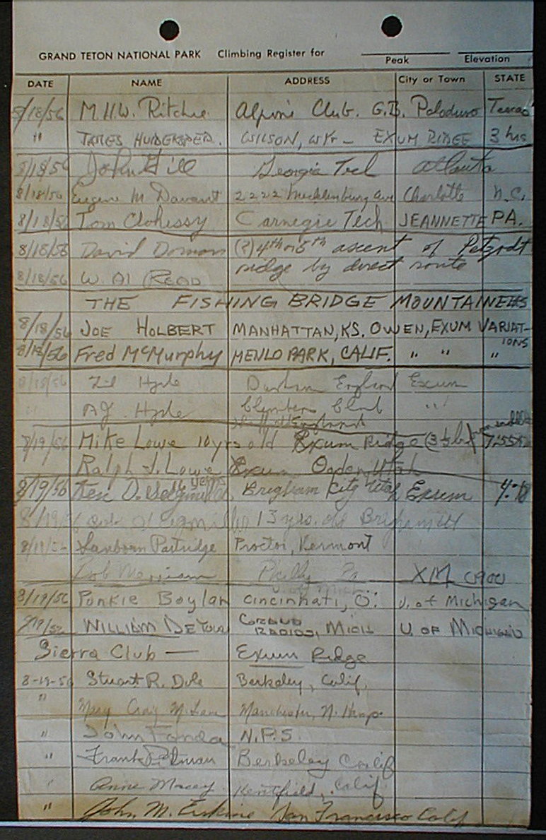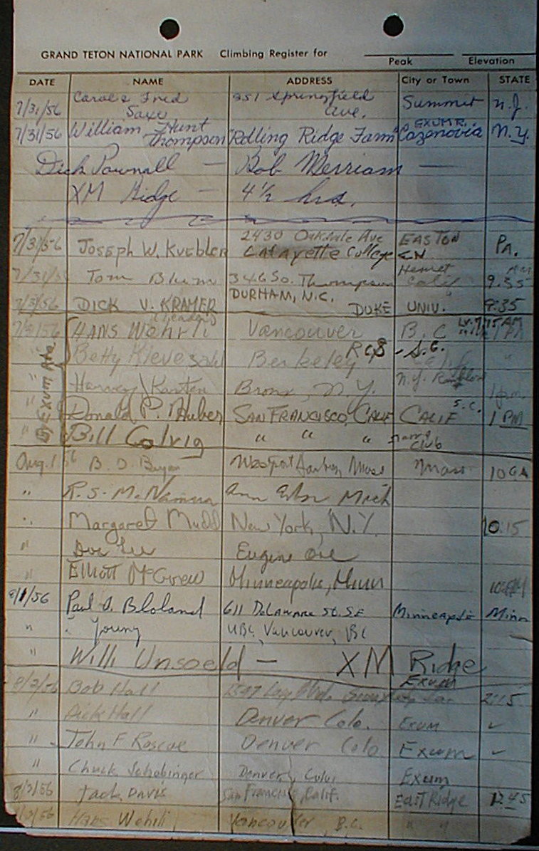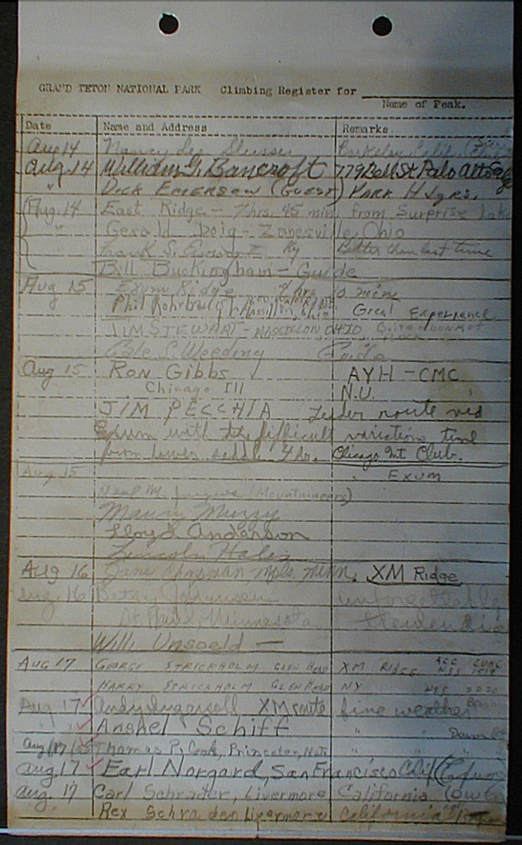 Teton Summit Registers