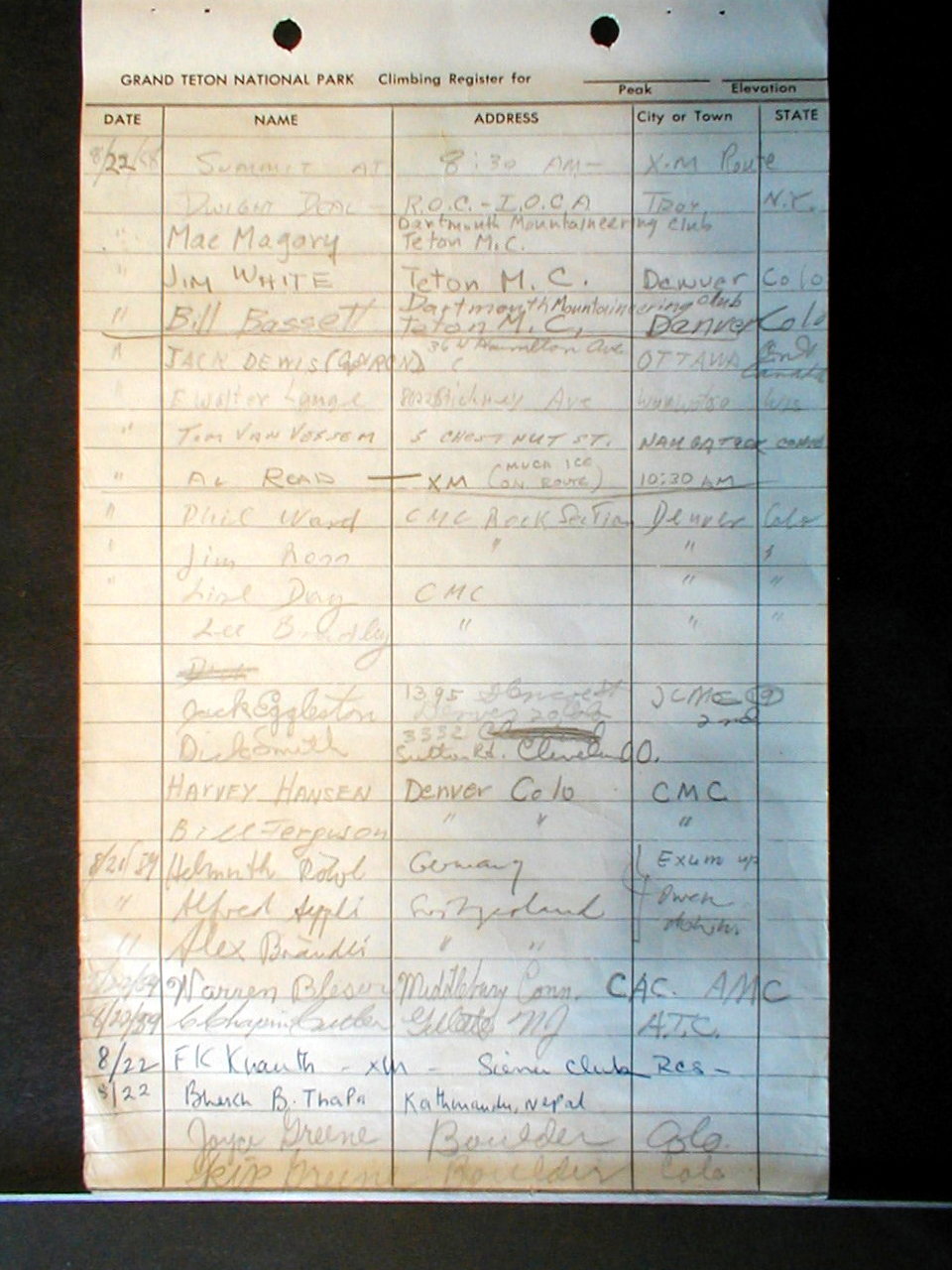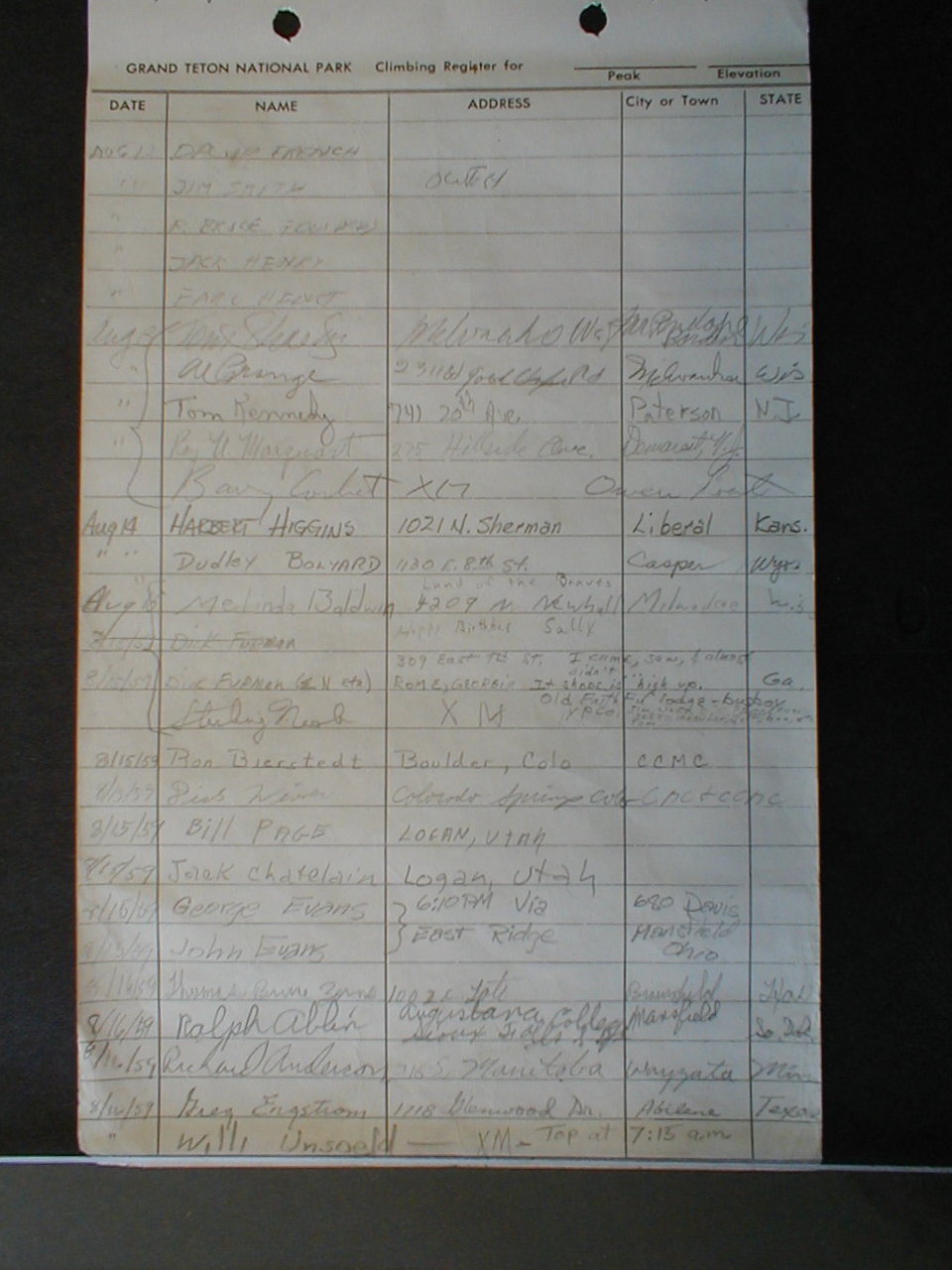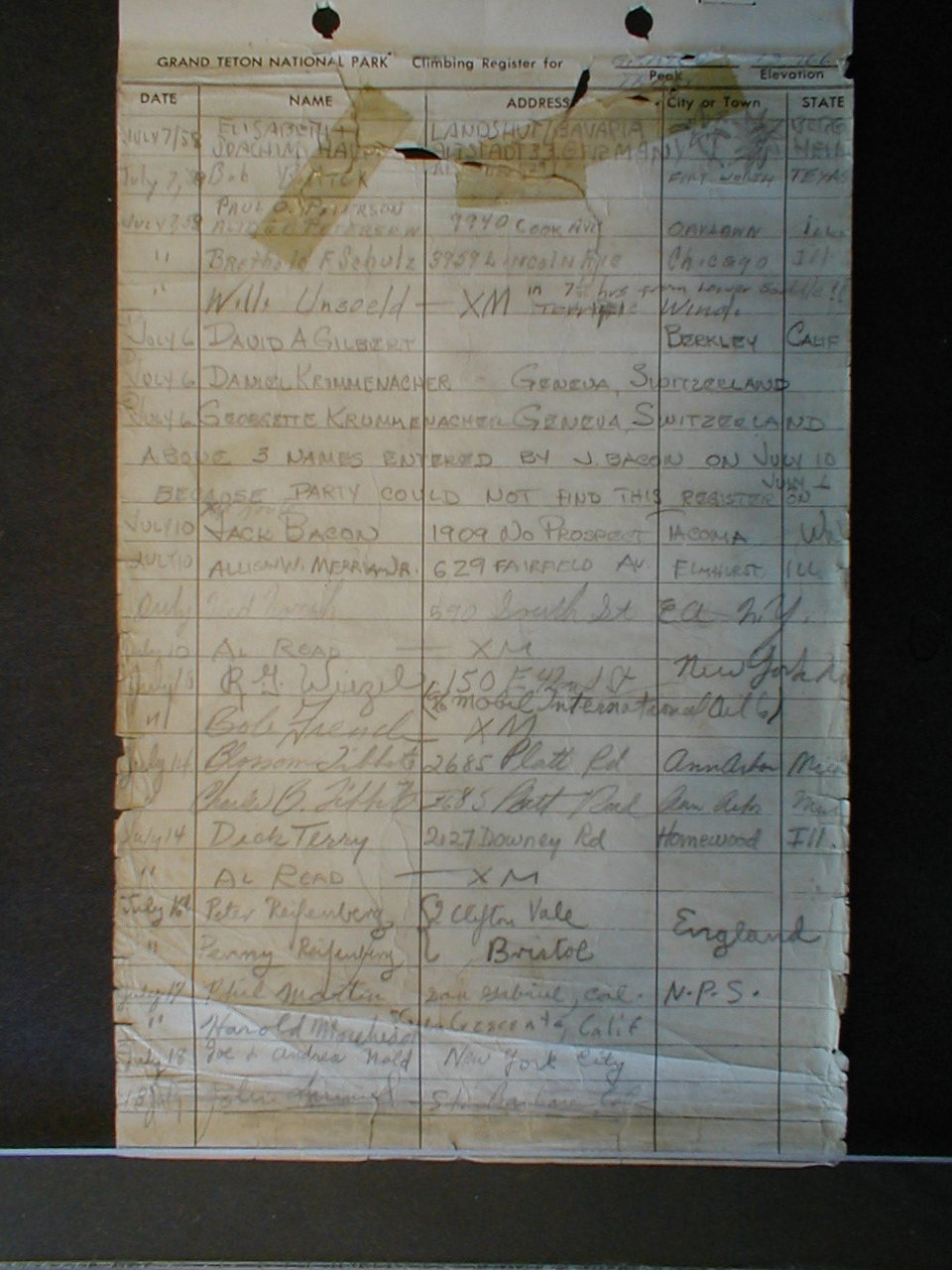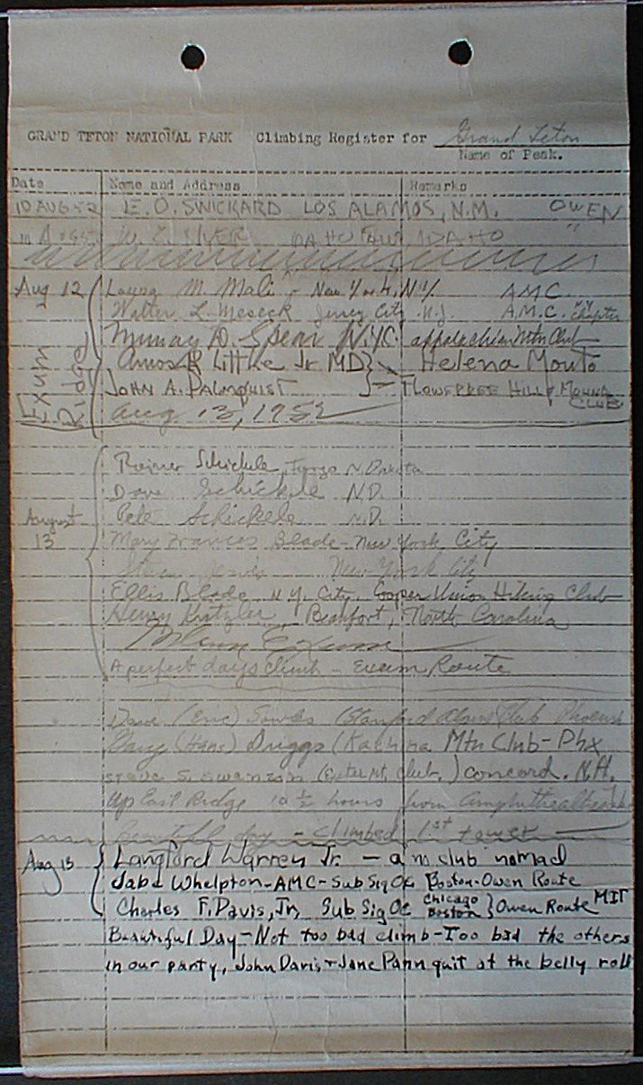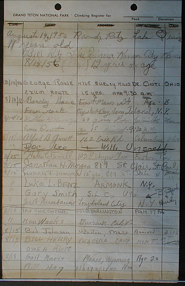 Teton Summit Registers
