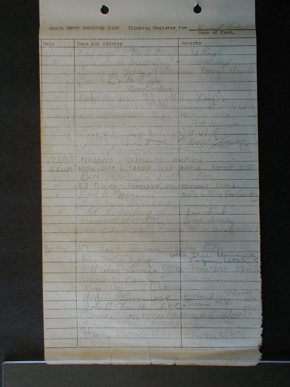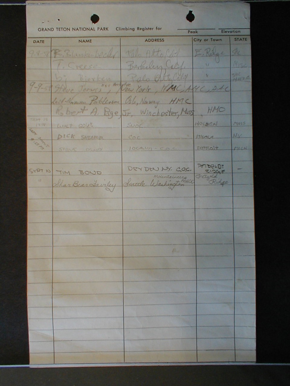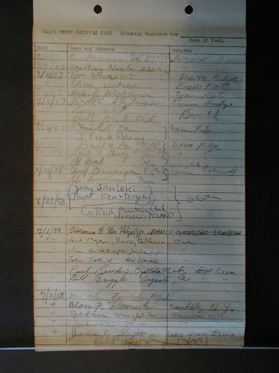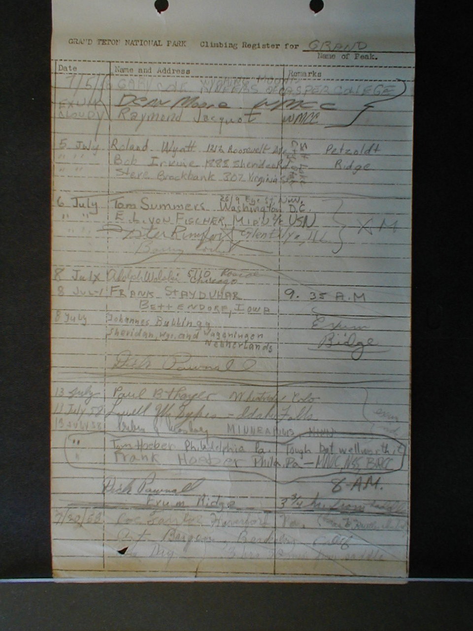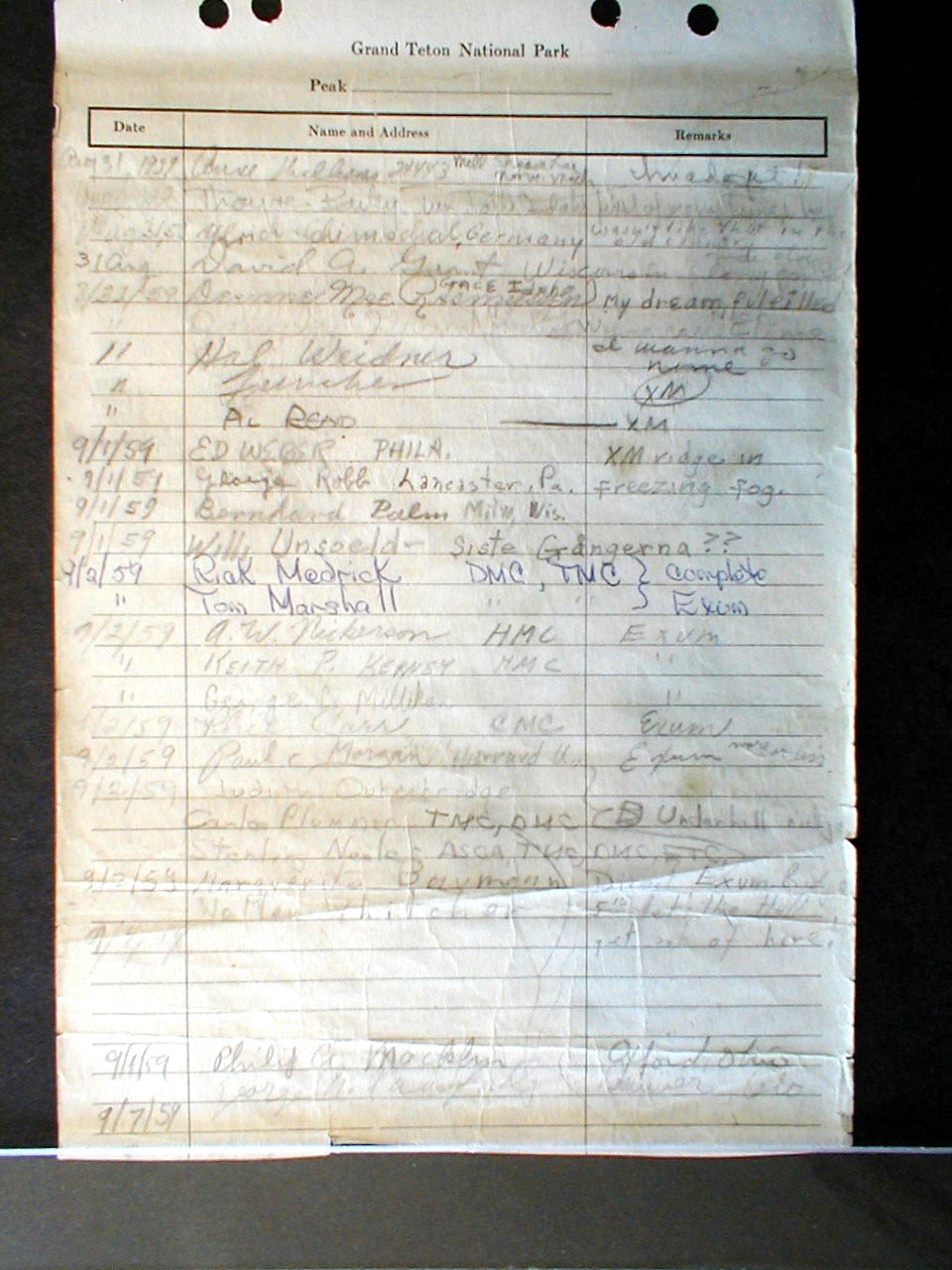Teton Summit Registers