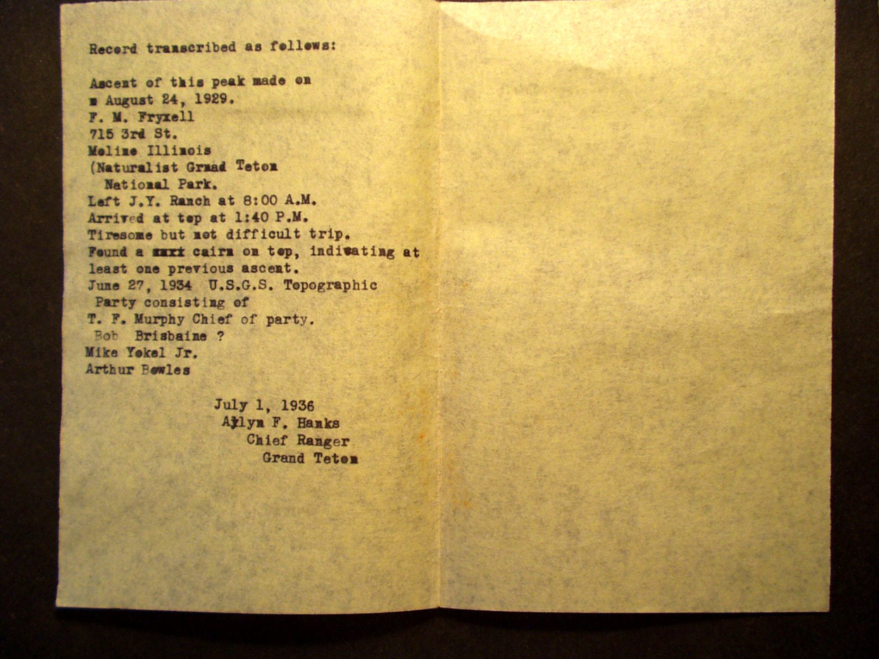 Teton Summit Registers