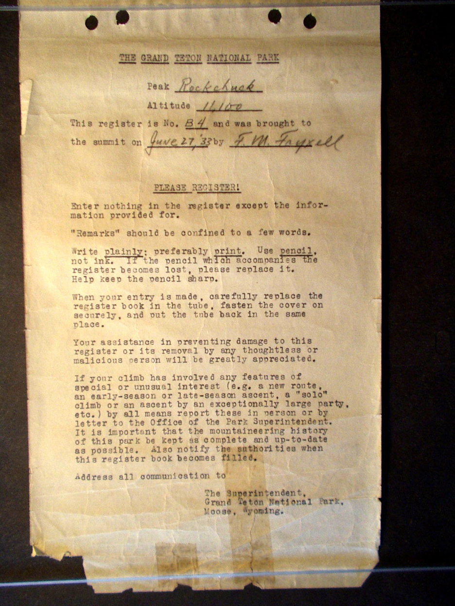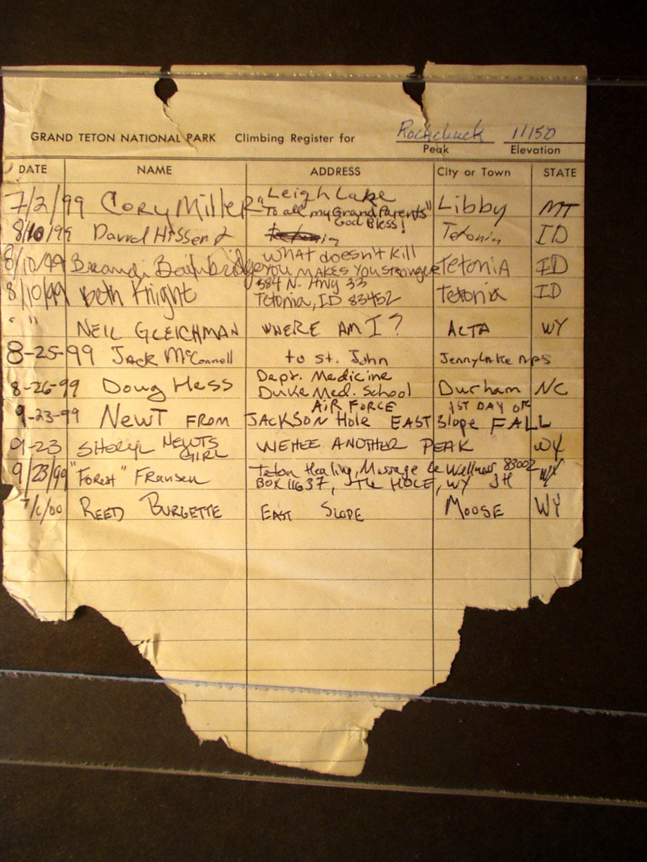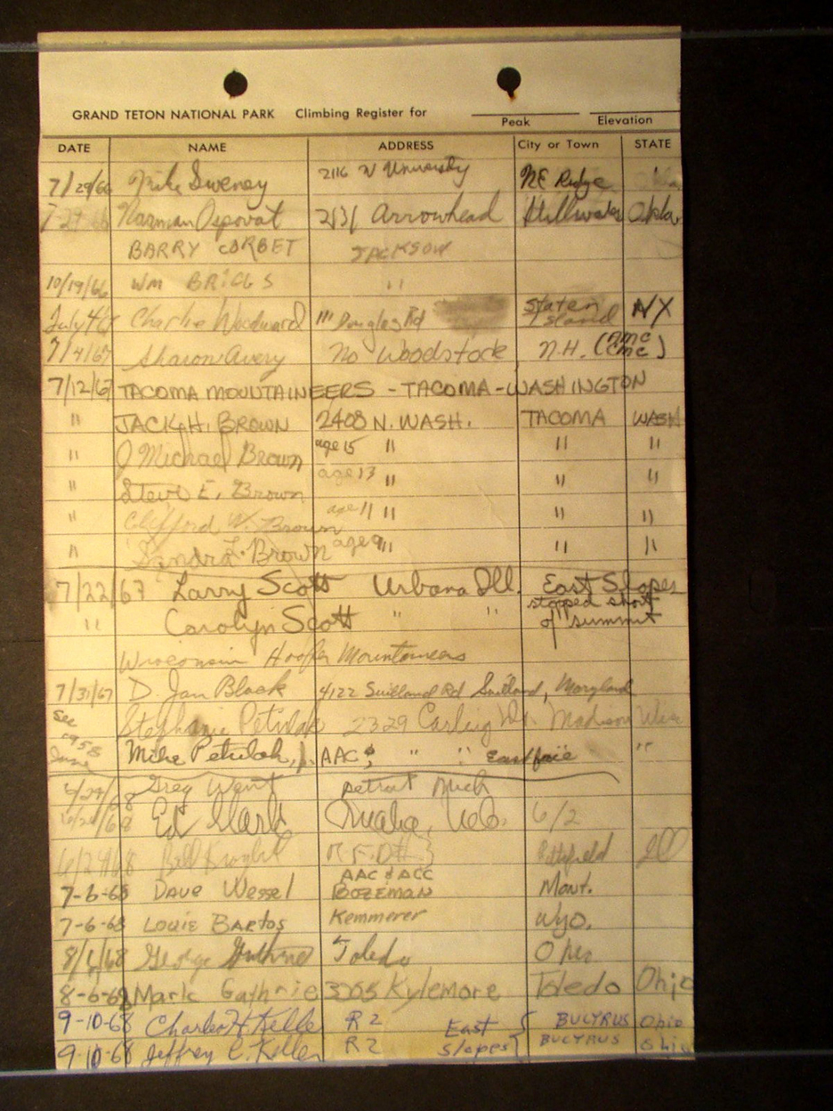 Teton Summit Registers