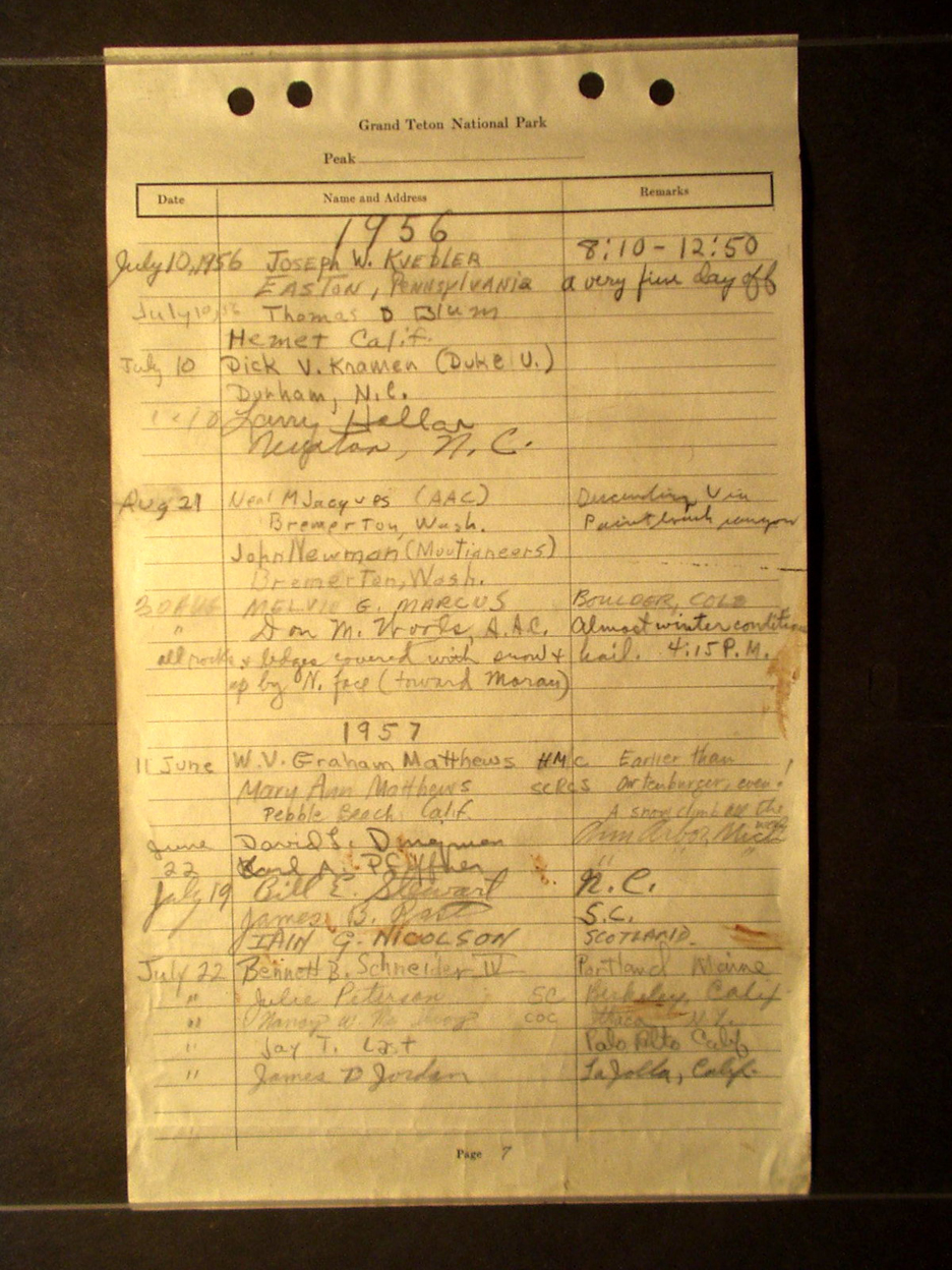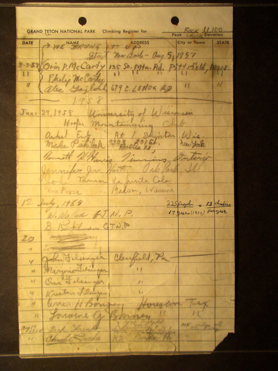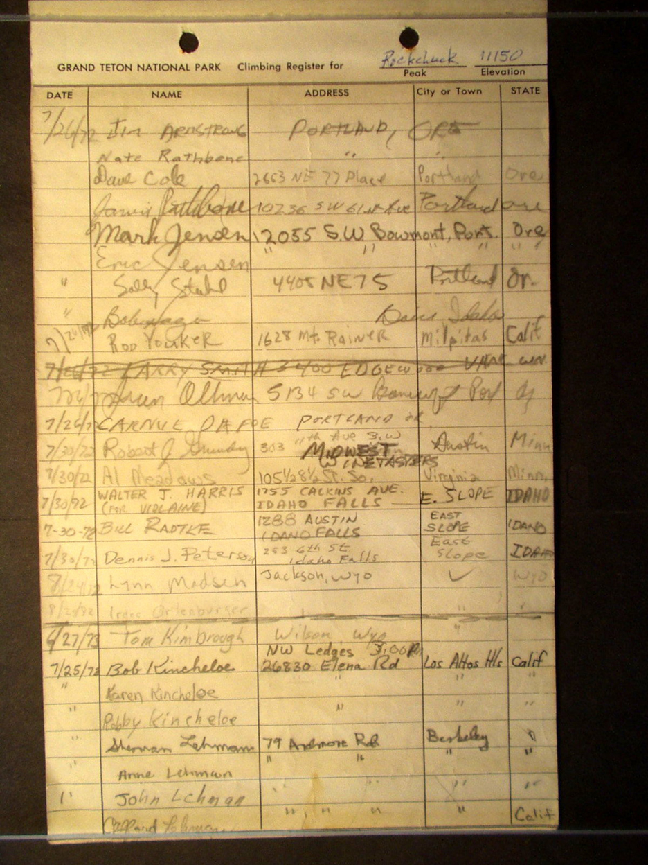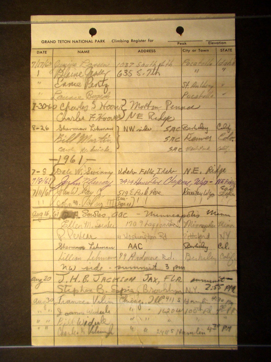 Teton Summit Registers