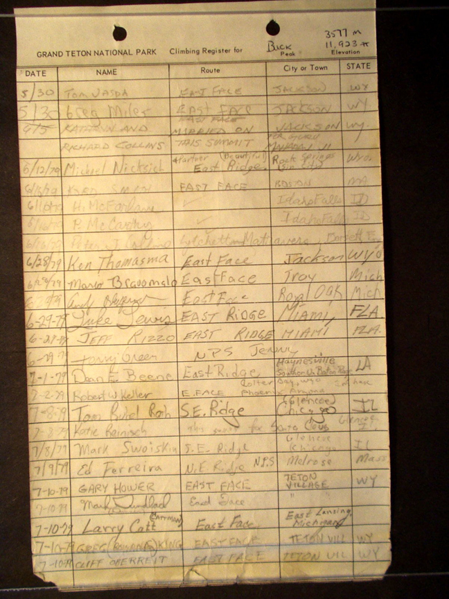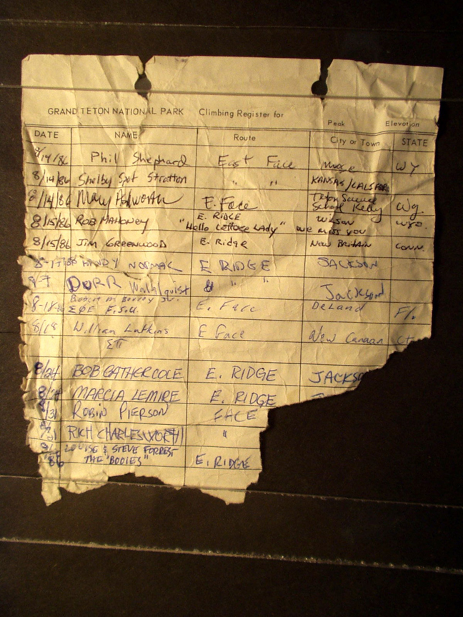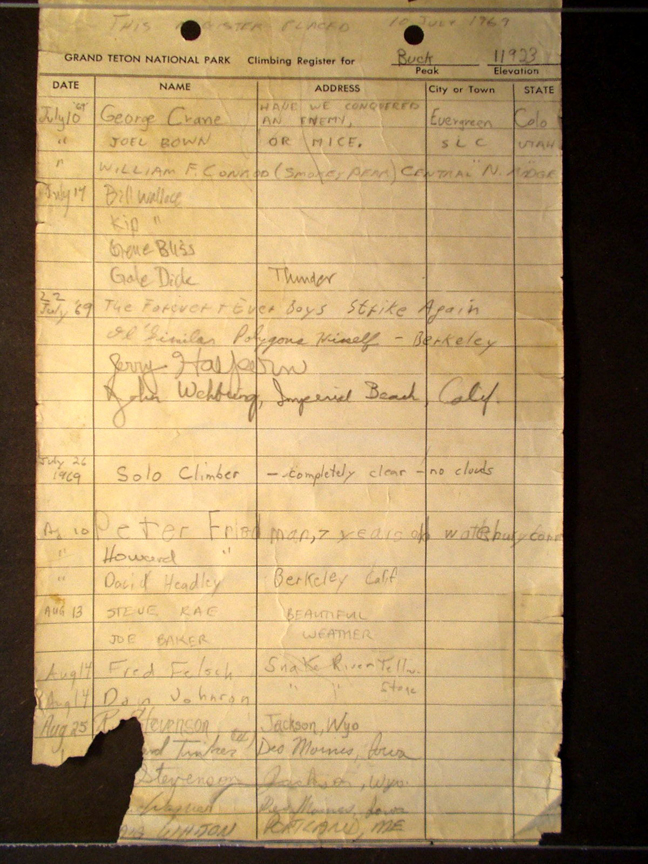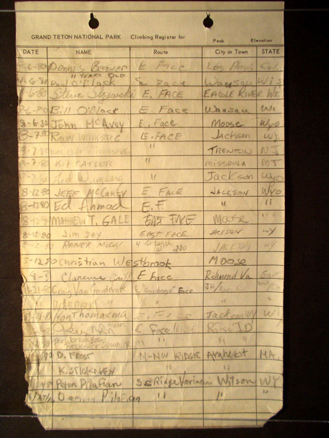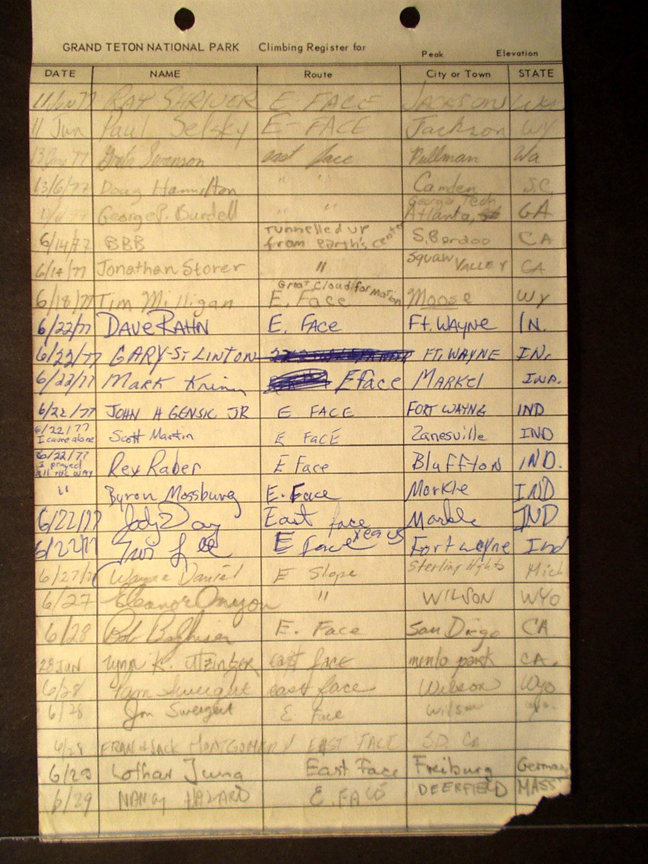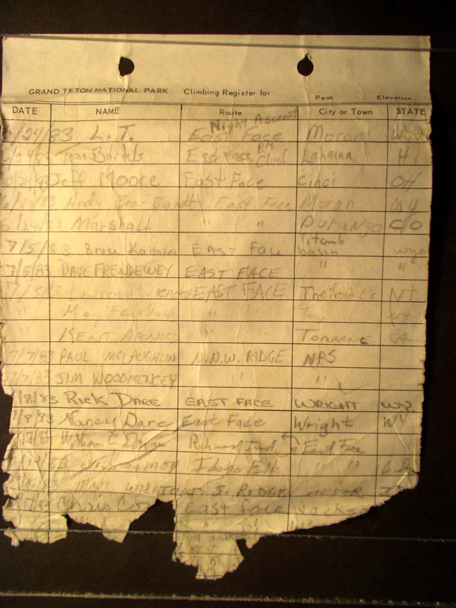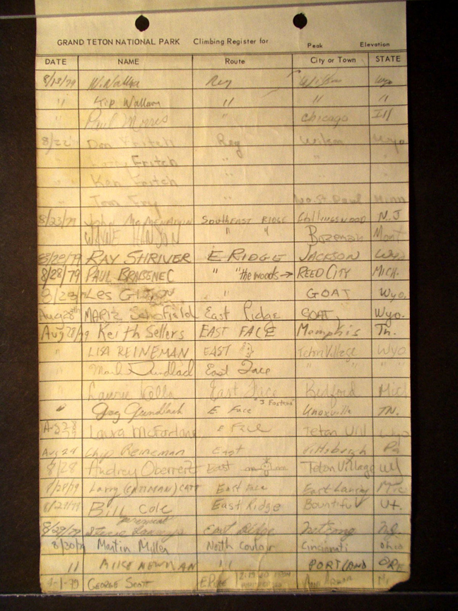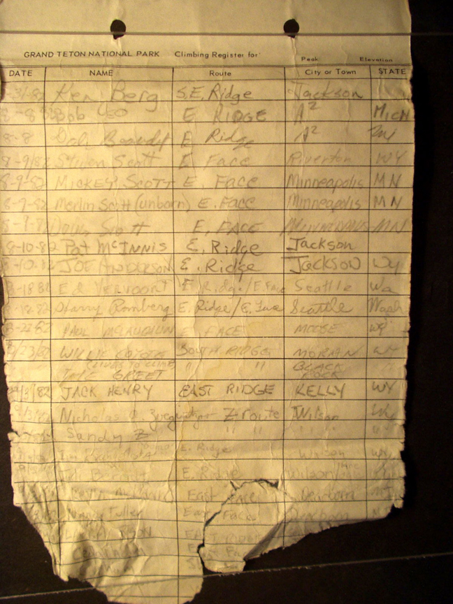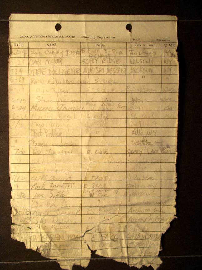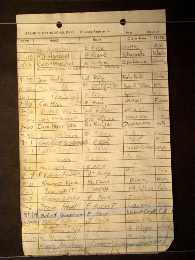 Teton Summit Registers