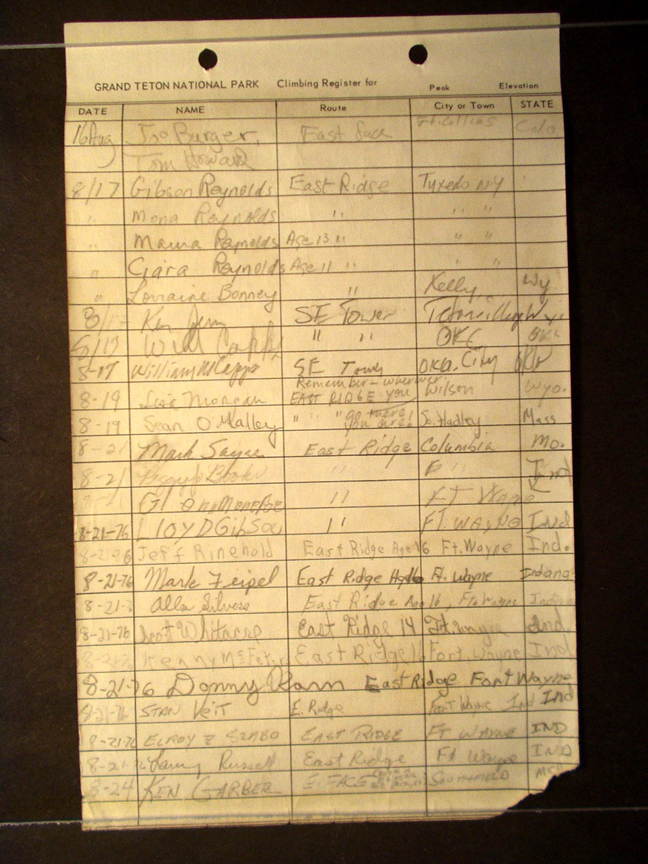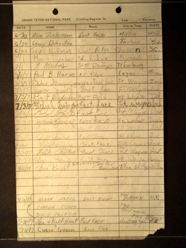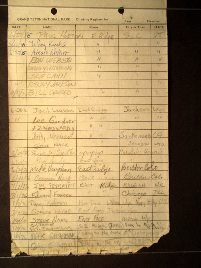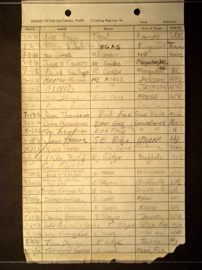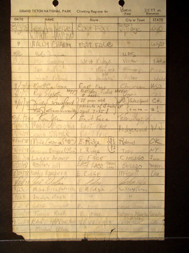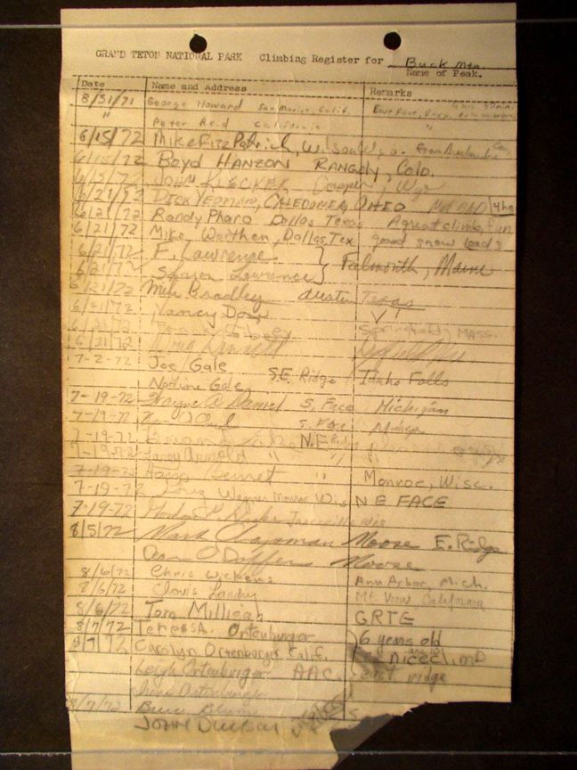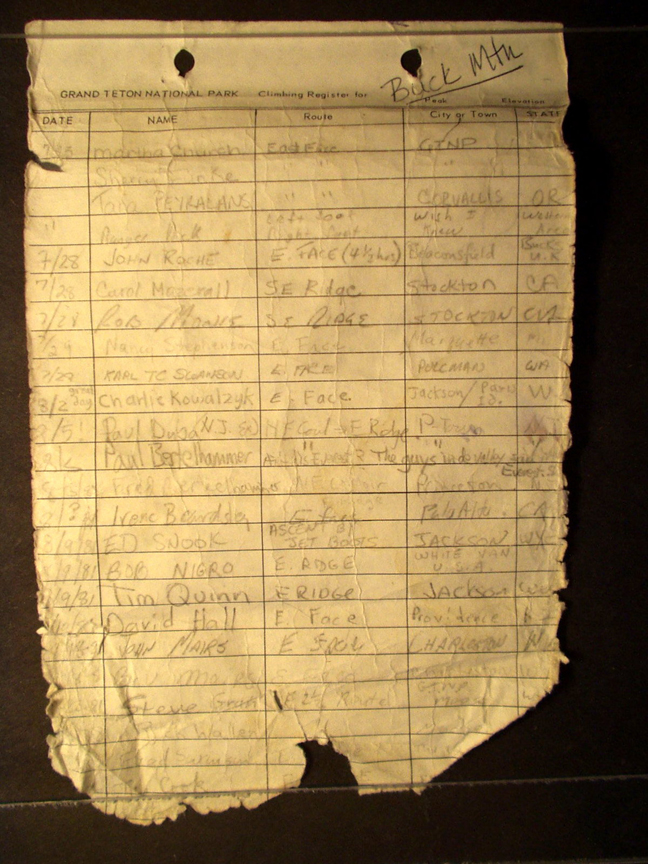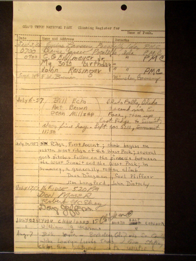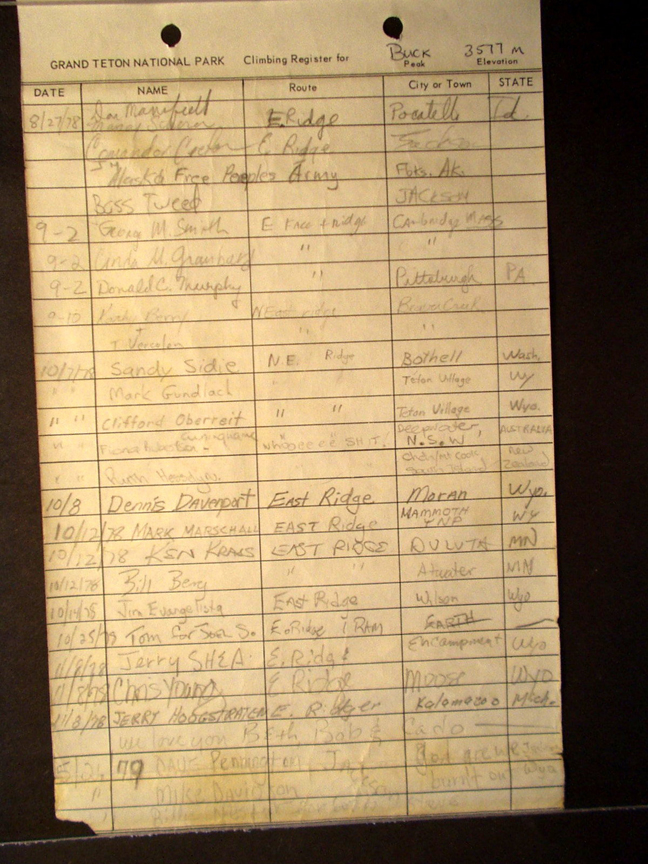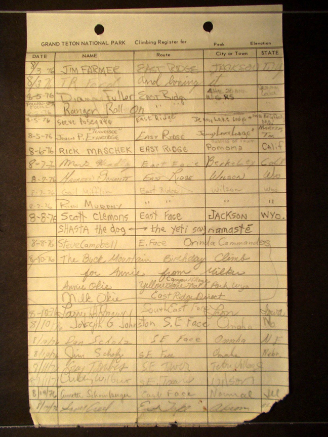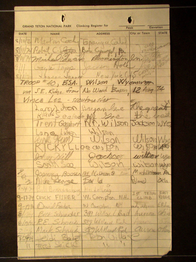 Teton Summit Registers