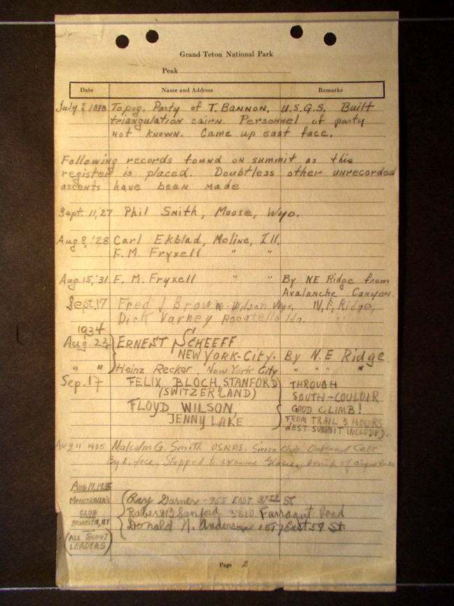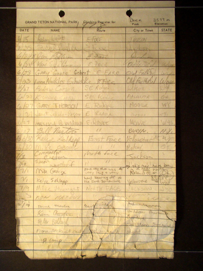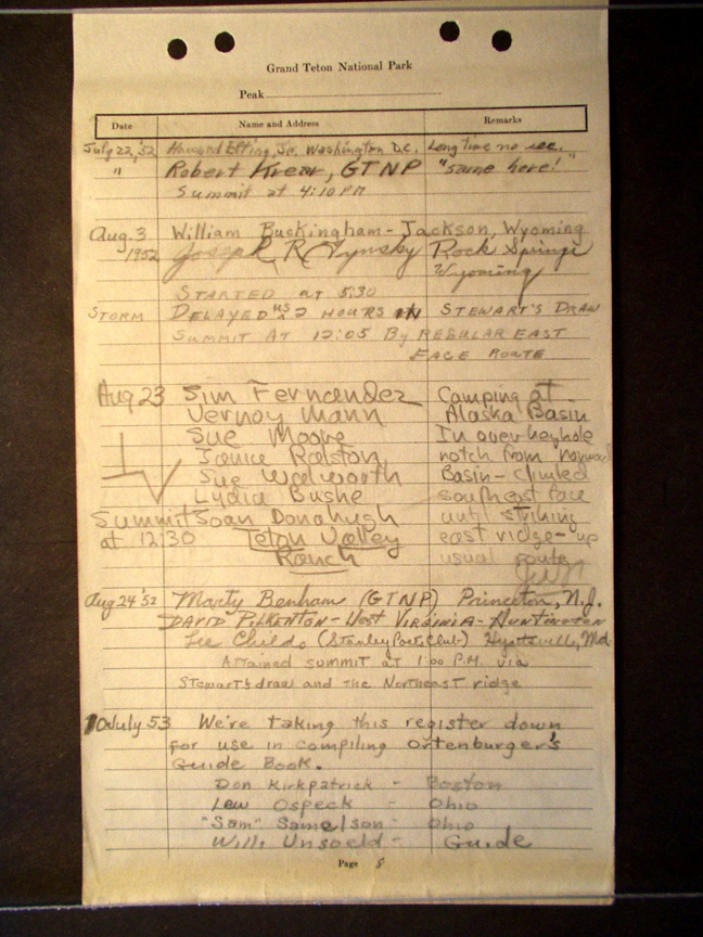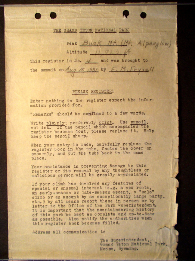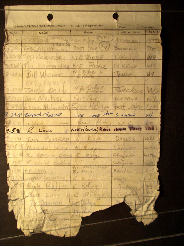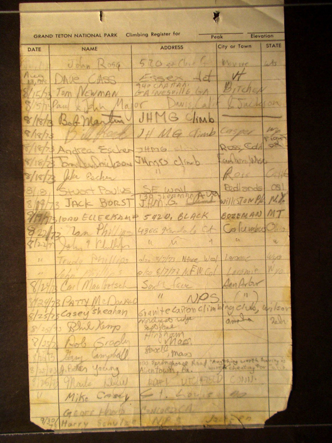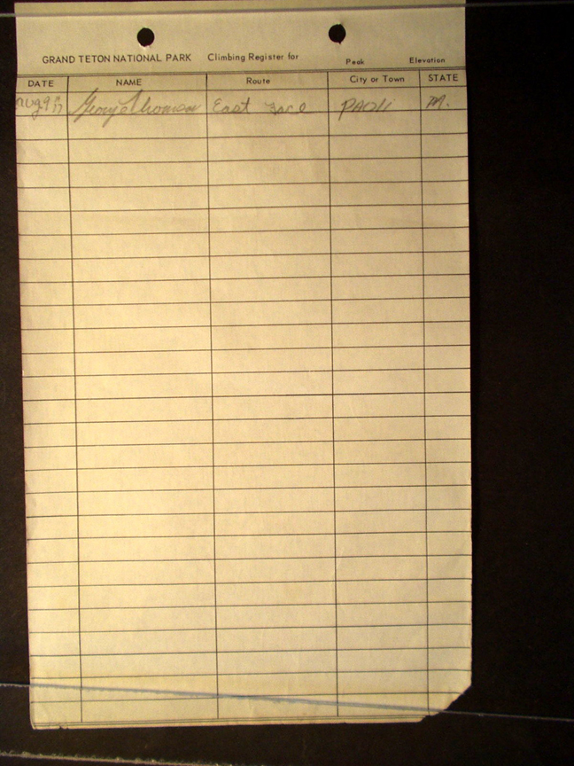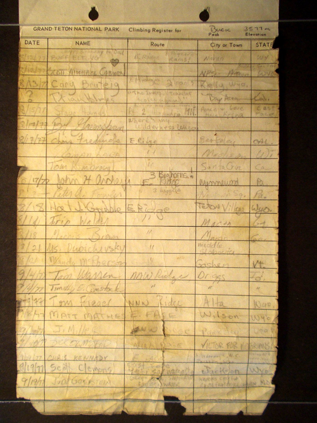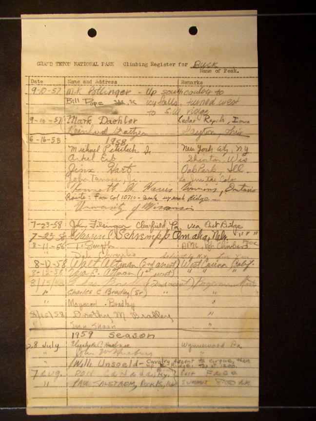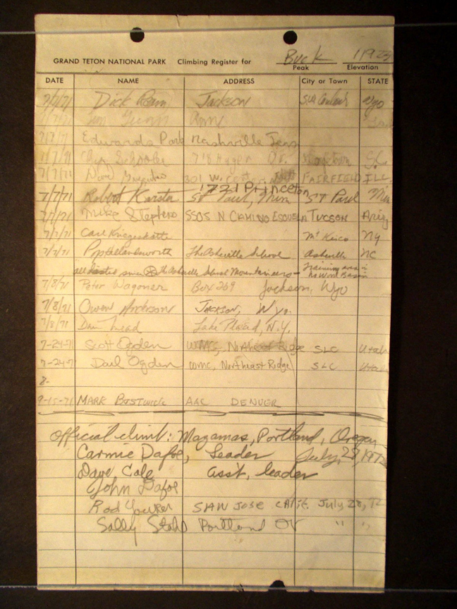 Teton Summit Registers