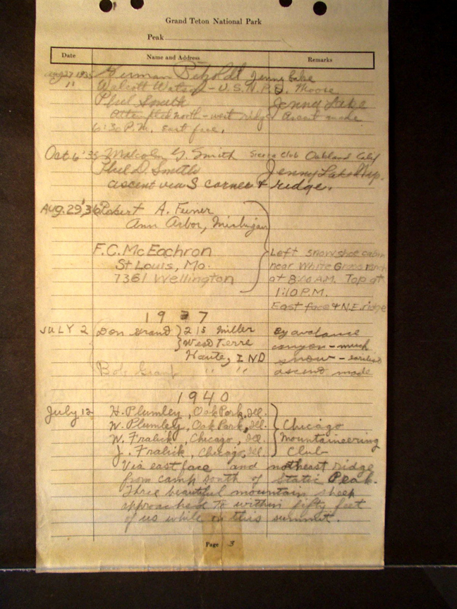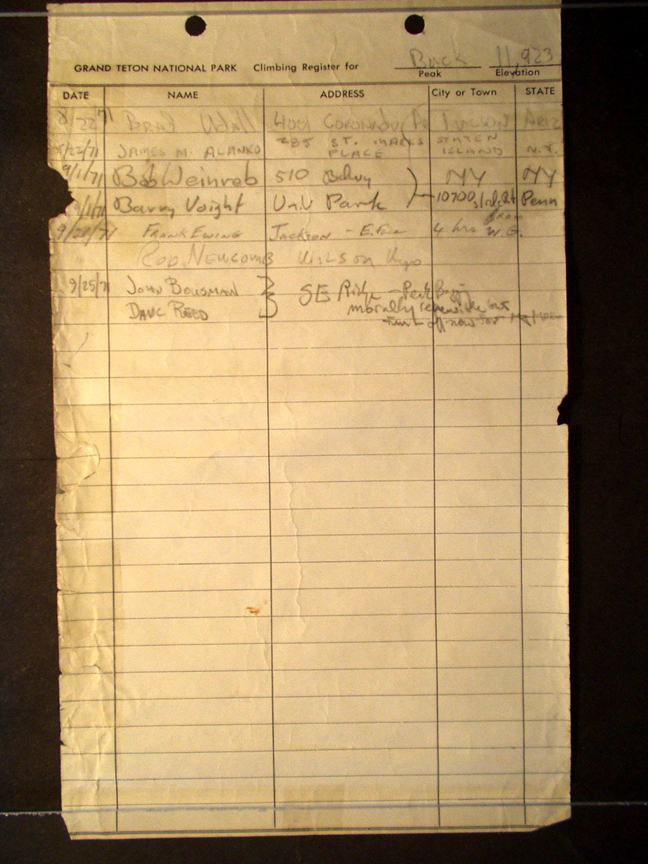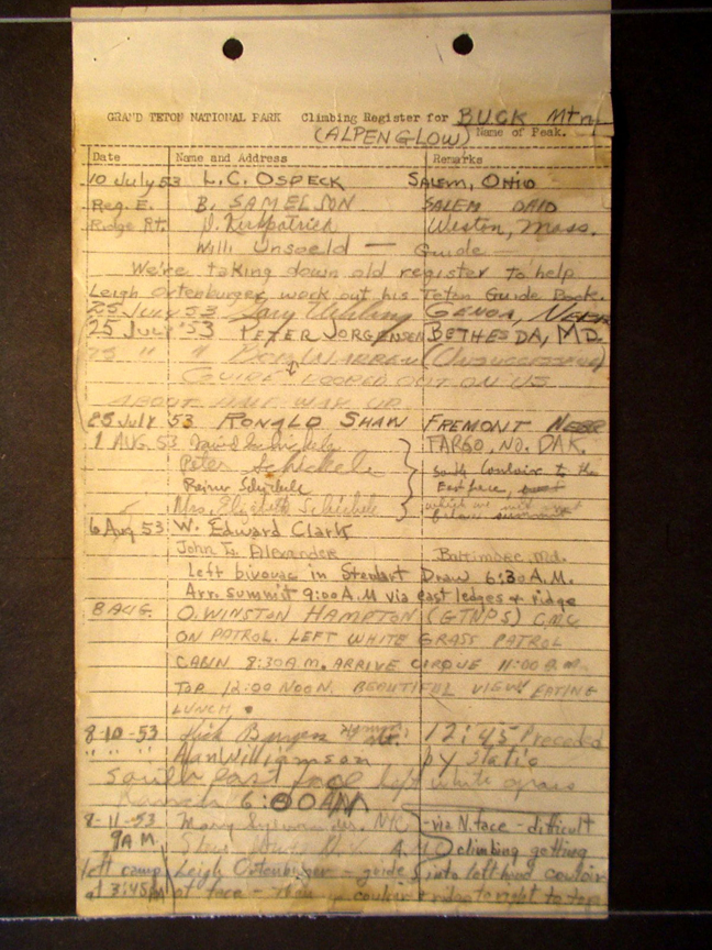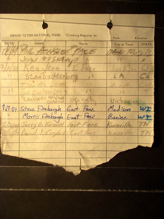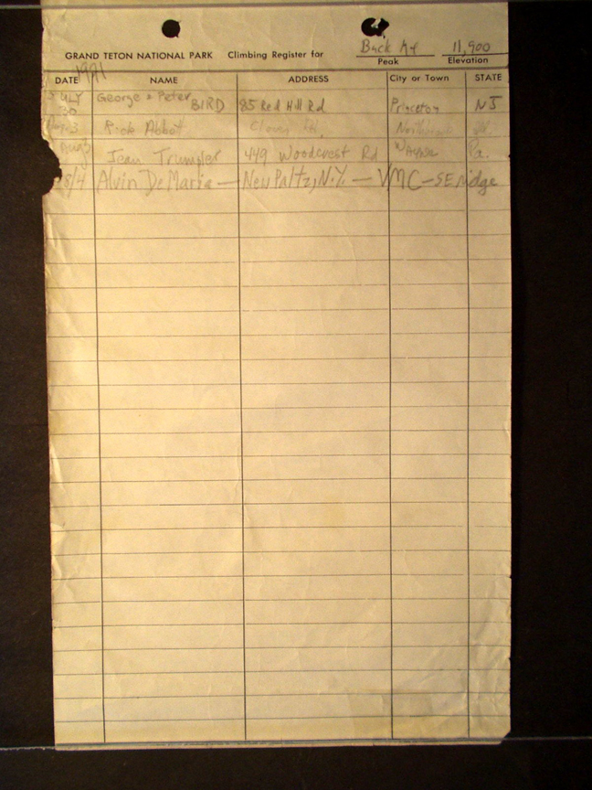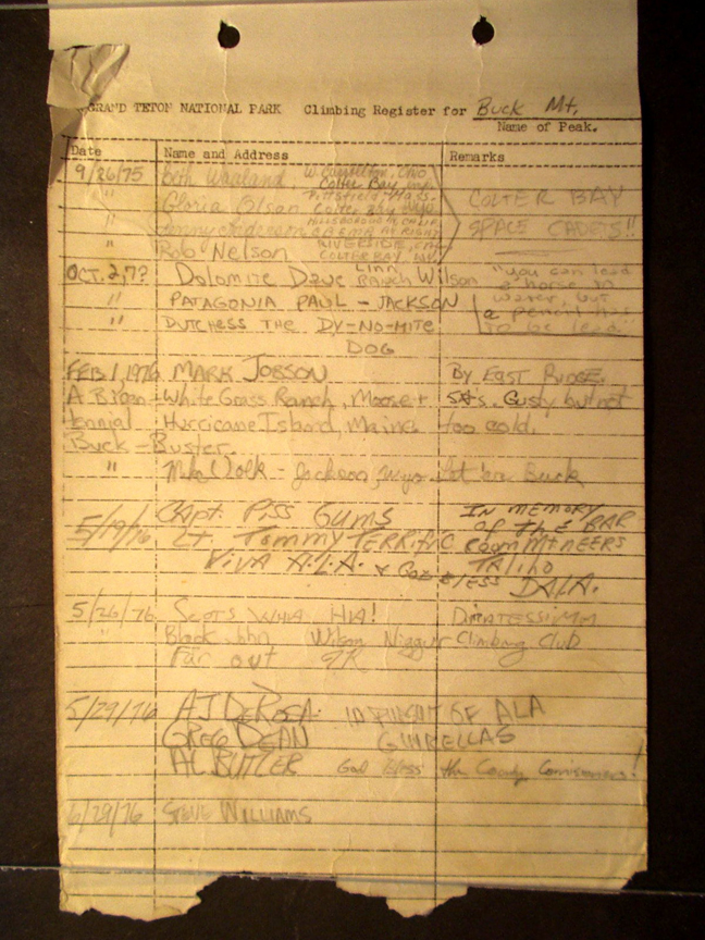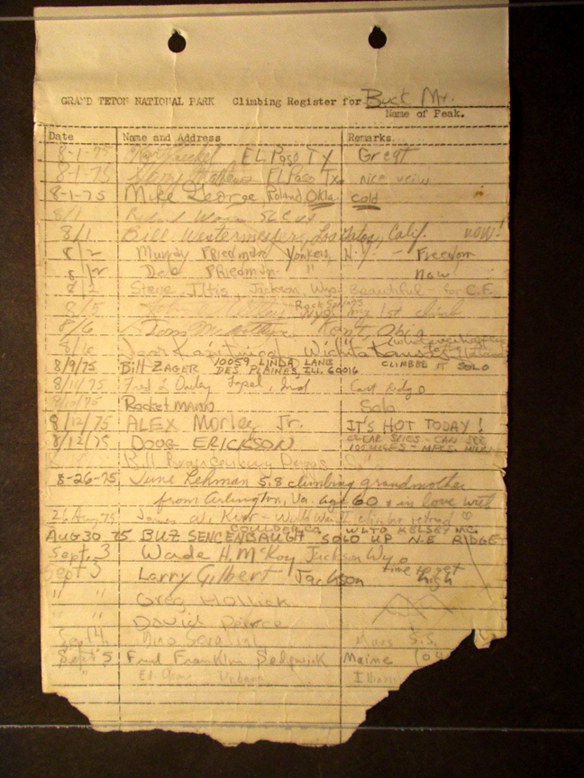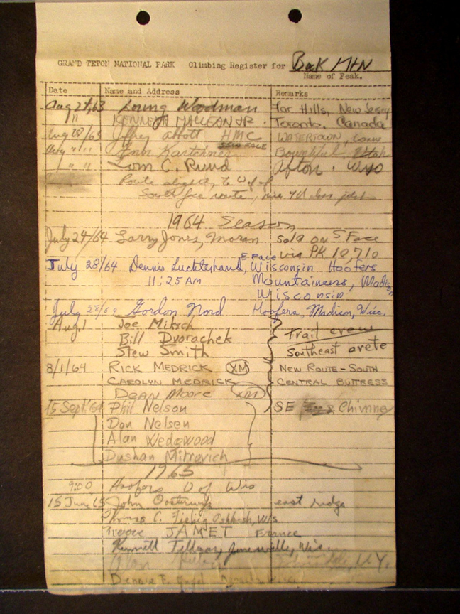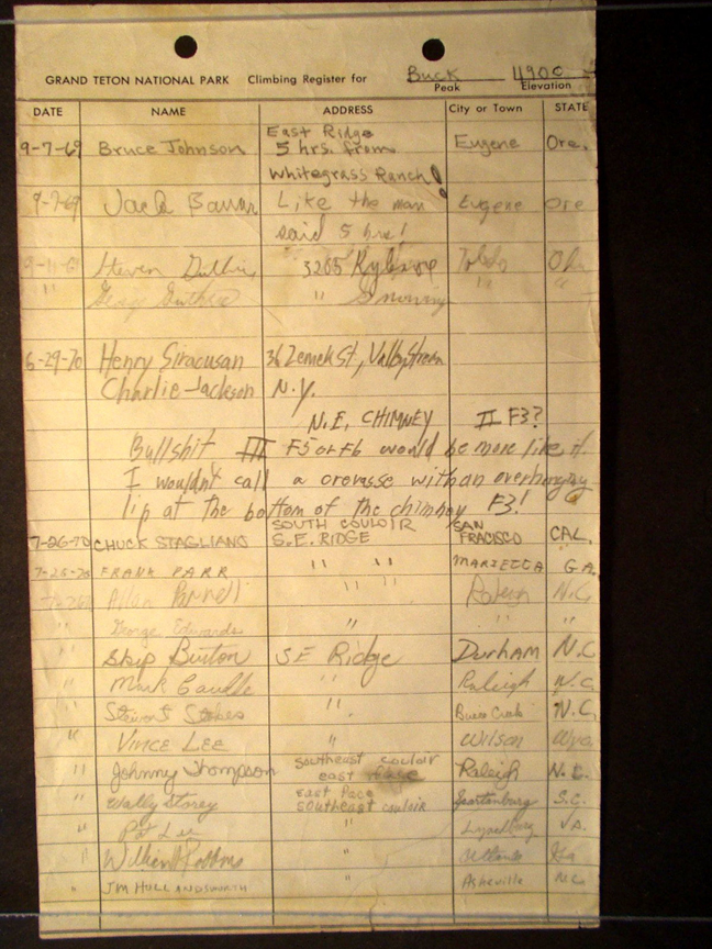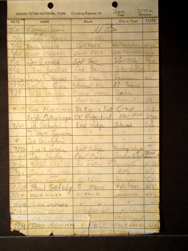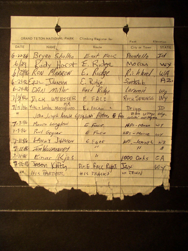 Teton Summit Registers