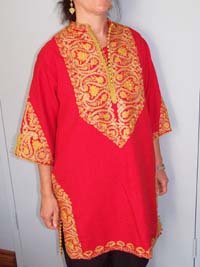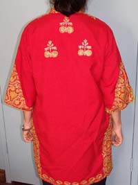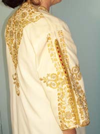 woman's garment with a heavily embroidered front panel.