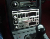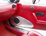 The stereo had a matching aluminum decor as well. This centerpiece faceplate matched the LE theme perfectly and was intended to pay homage to the quite-chromed Cobra cars of the 1960's. A stereo cover was also included as a theft deterrent or as a dust-protectant. This Mazda Sensory Sound System was standard on the LE had a Pioneer AM/FM/Cassette/CD combination with a lower "Bodysonic System" that controlled the sound equalization as well as the seatback-mounted bass transducers. These "thumpers" are not subwoofers since they do not make sound, however the bass that you feel makes a big difference when driving in a convertible. There were also two perforations in the headrest of both the driver and passenger seats to house a total of four small surround speakers. The shift knob was wrapped in leather by Nardi.