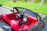 The most stunning feature of the LE was that is was a brilliant black car lined with a deep red interior. The seats were made of red leather, and the carpet and dash were also matched with the same color. The red carpet floor mats also had the embroidered "Miata" script .