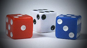 Set of 3 deluxe dice in red, white and blue. |