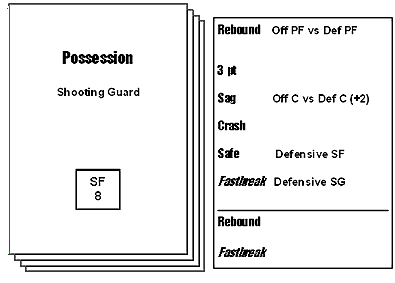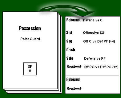 Play Cards. This deck is used for most possessions and rebounds, and it also