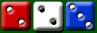 Replay Basketball plays with three six-sided dice (red, white and blue) and