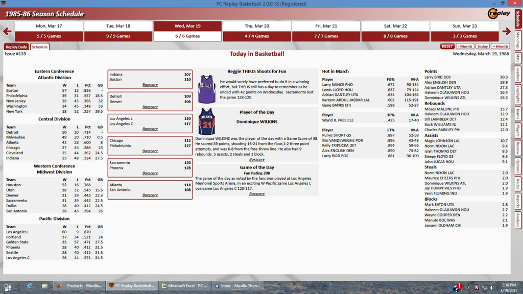 easy-to-read schedule screen shows you the day's games, so you can decide which games