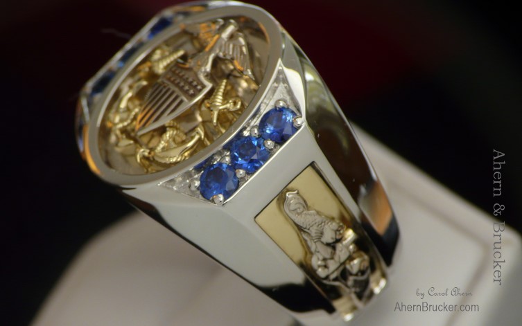 Our customers quest for excellence and our ability to produce the finest workmanship combined with the finest materials is the backbone of this masterpiece. You will not find a finer military ring in the world.