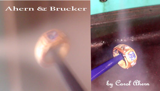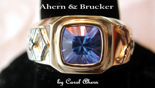 Welcome to Ahern & Brucker Fine Jewelry Shop & Studio. Ahern & Bruckerby Master Goldsmith Carol Ahern Pricing We offer our rings in 3 versions with your choice of metals and gem stones in a variety of price points to fit any "reasonable" budget. The Premium Limited Edition ring This ring uses the finest natural premium matching gem stones - made by mother nature - The Standard Edition ring The finest cultured stones - made by man - The Basic Edition ring No gem stones