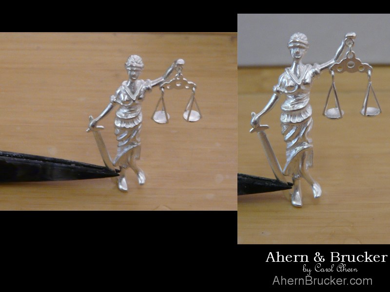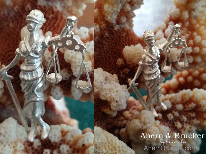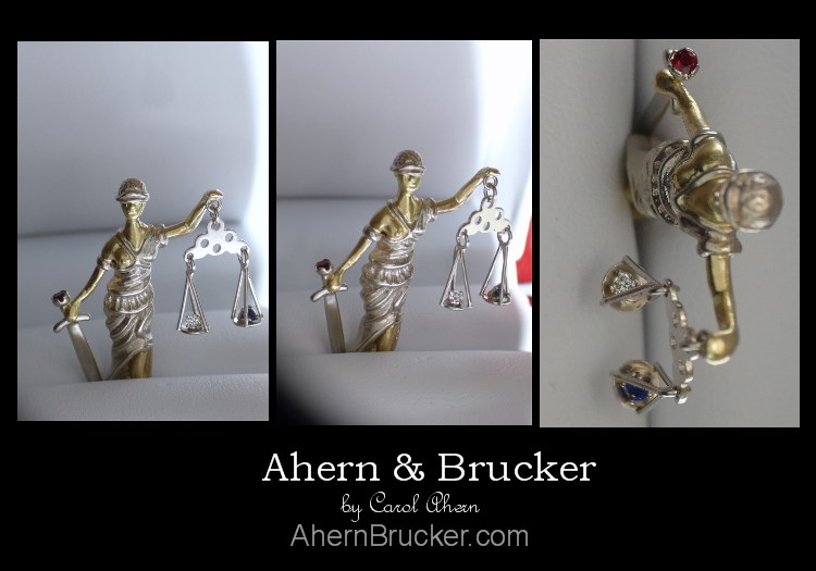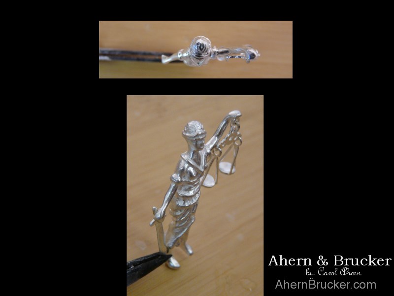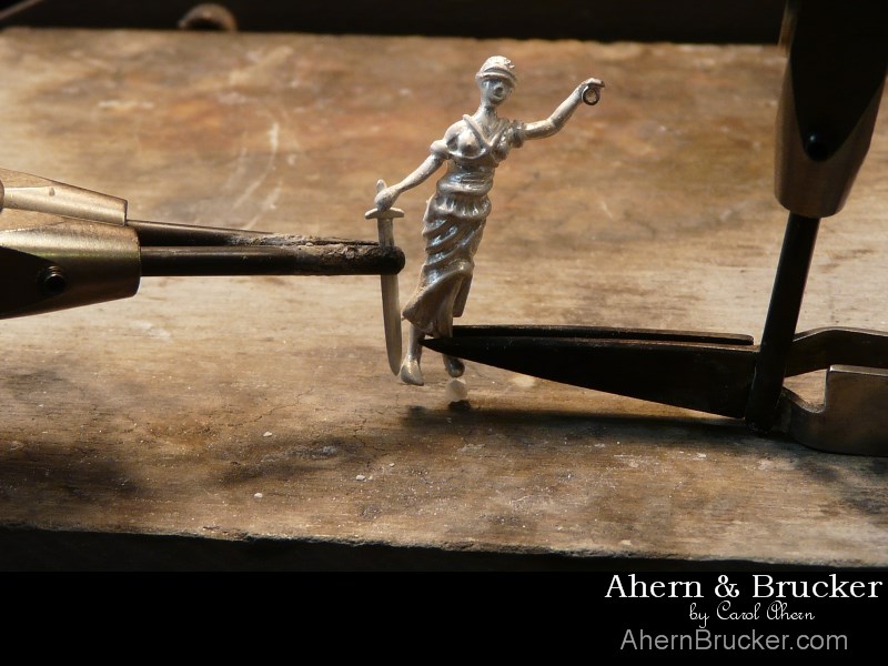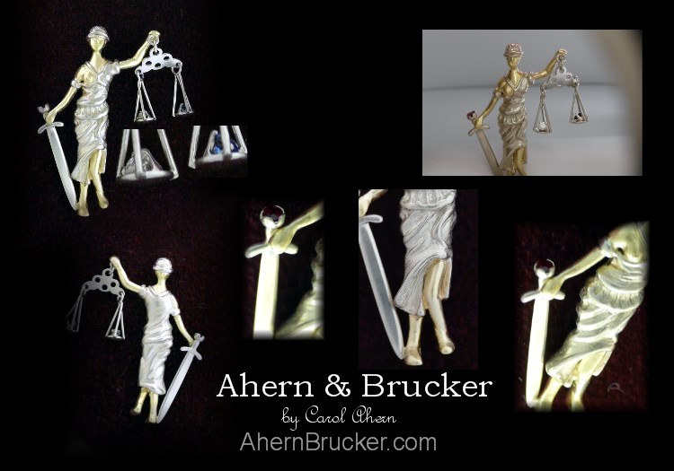 Welcome to Ahern & Brucker Fine Custom Jewelry designs & Limited editions by Master Goldsmith Carol Ahern a commission from start to finish Doing justice A finely detailed 2 tone (20 individual pieces) "Lady of justice" pendant or tie clasp/