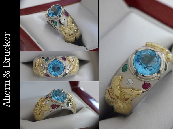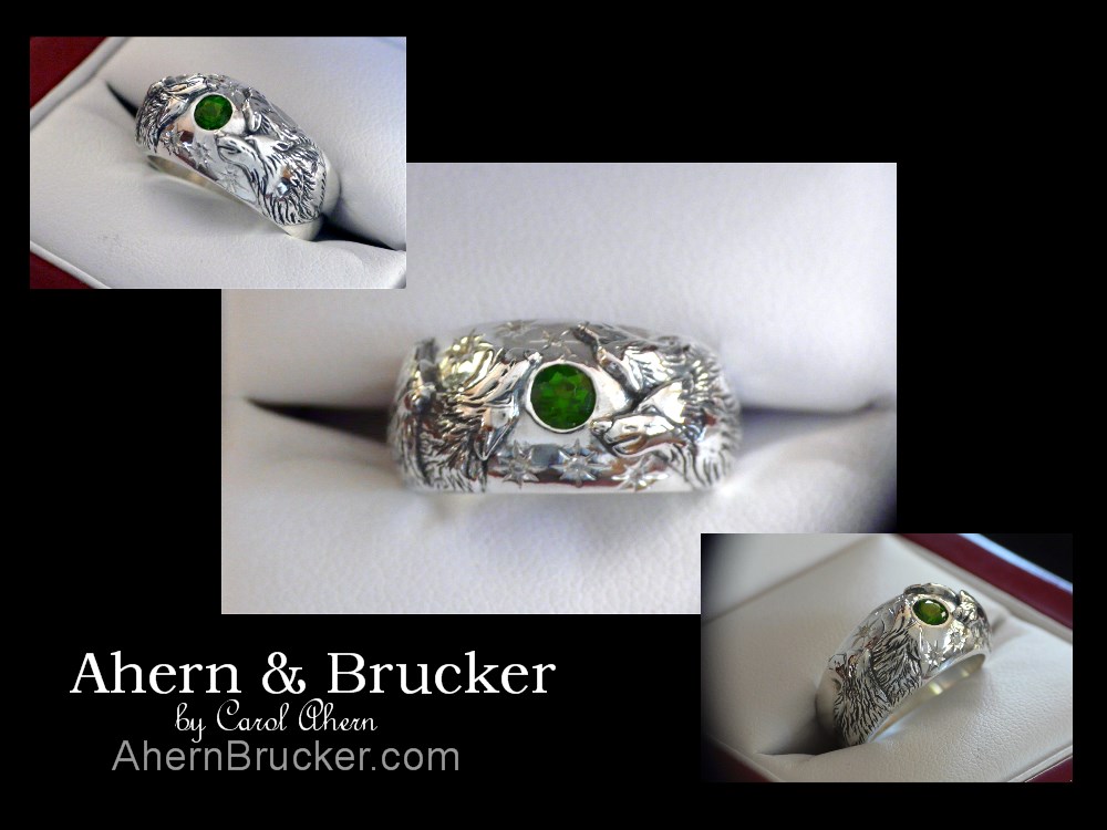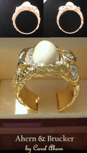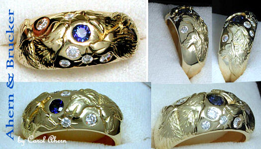 Thank you so much for your beautiful workmanship. I do love the ring and all the creative expression which you have accomplished in its design. I have sent you the balance of payment this week and a note of thanks for your design. You have wonderful talent and I am just fortunate to have found your website. I appreciate your thoughtfulness and hope you have wonderful holidays with your beautiful snowy scenes. We still have quite the early spring look here in NJ. Again best wishes - I will be in touch again I am sure. Thank you again for your superb creation. Mrs. L.
