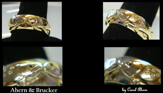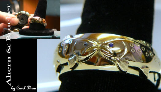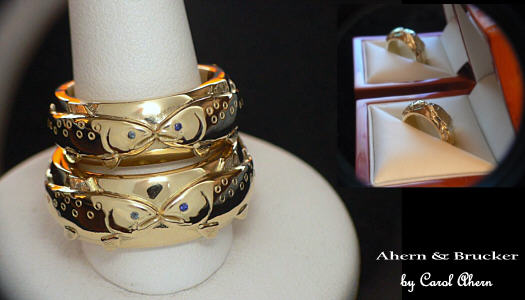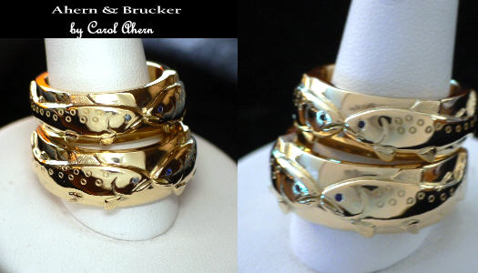 Fine Custom Jewelry & Limited editions For a couple living in the back country of Alaska we present these custom made salmon rings in 18k.