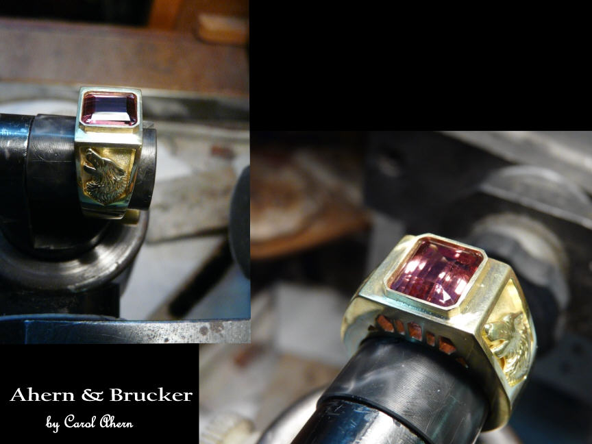 18k yellow gold wolf ring with Imperial topaz