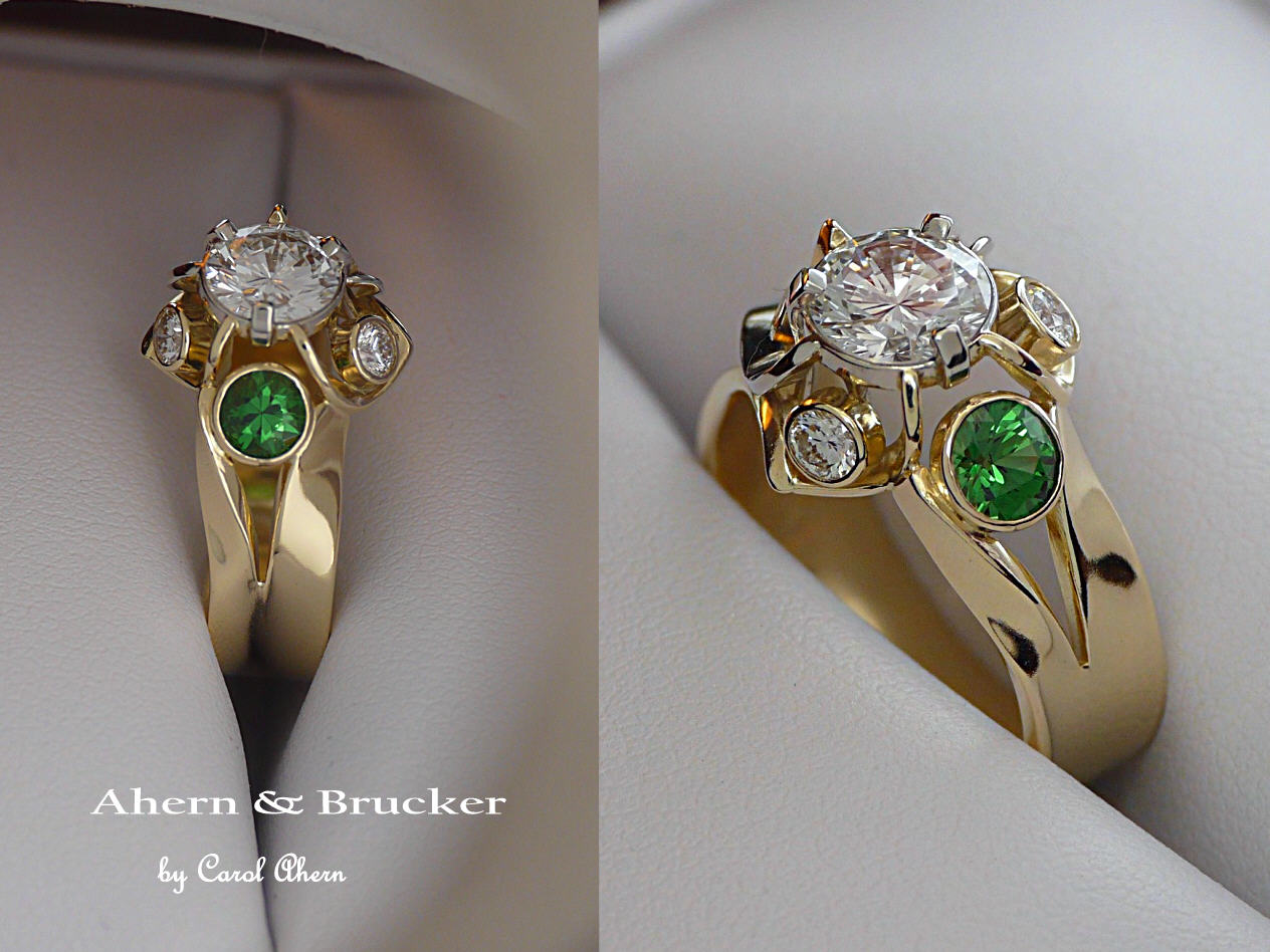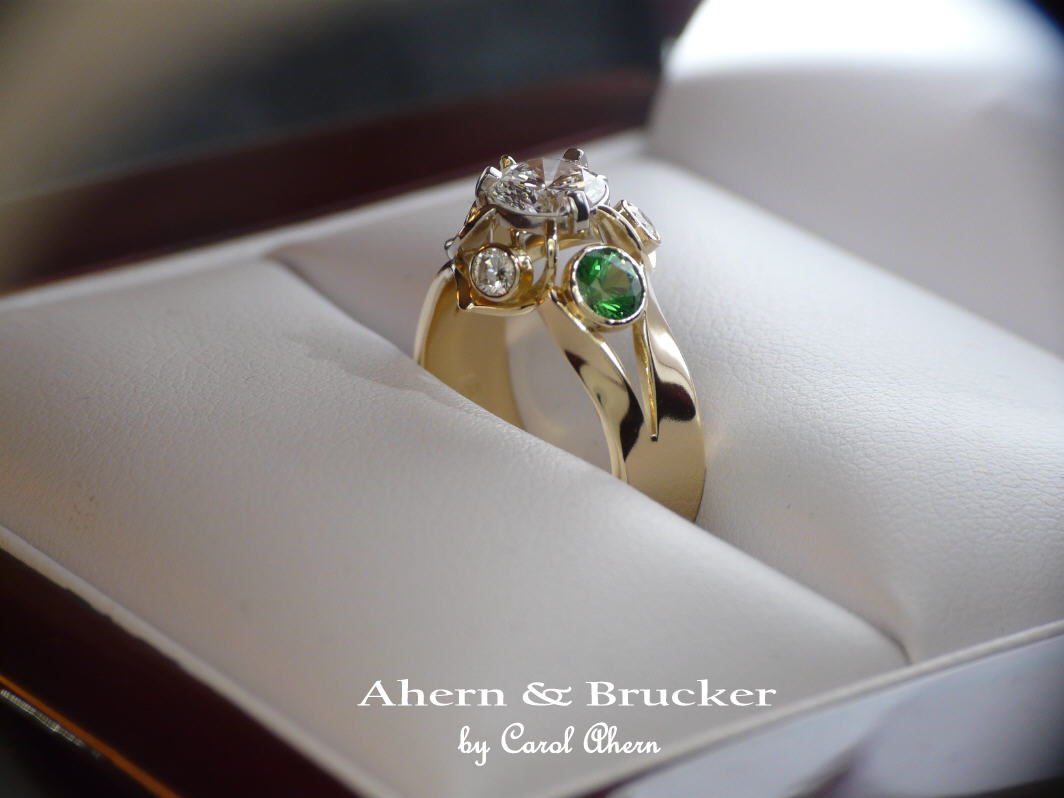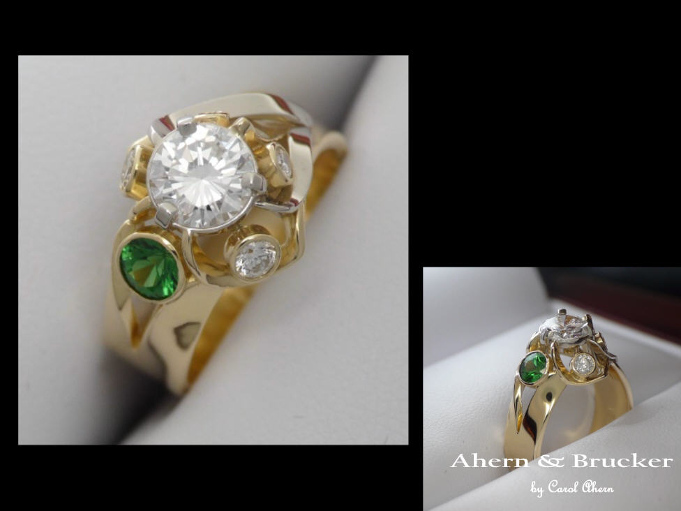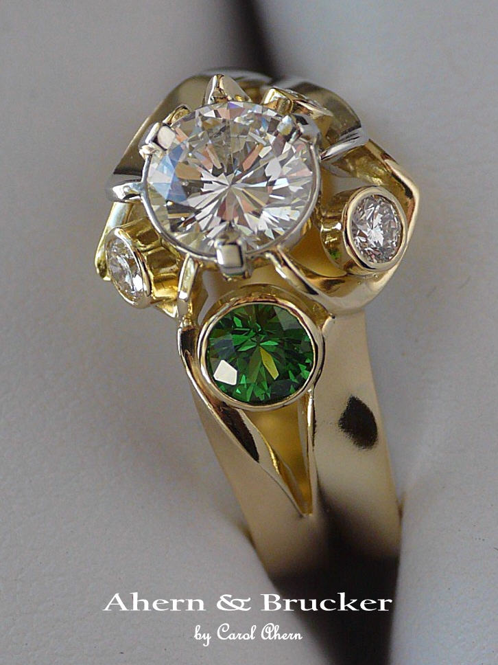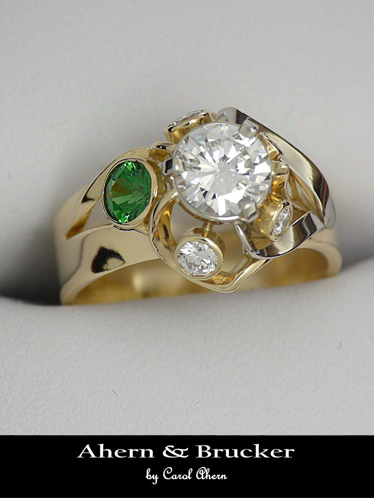 A 2 tone 18k hand fabricated diamond and Tsavorite