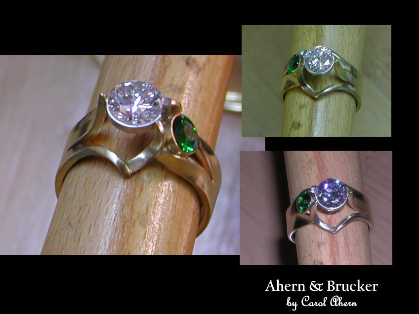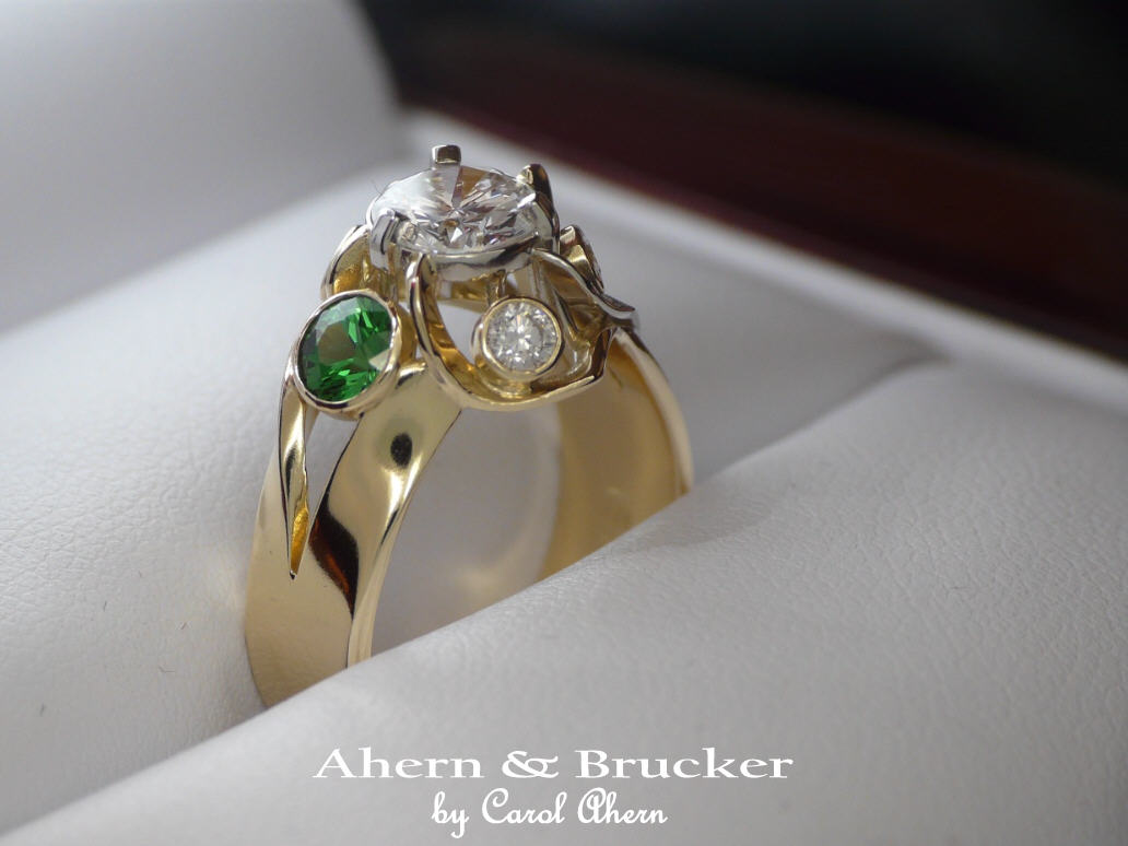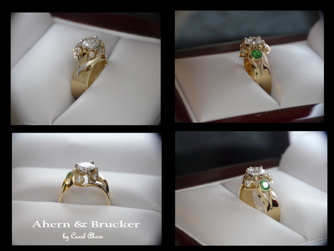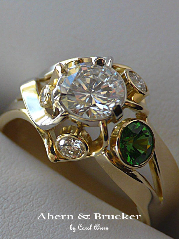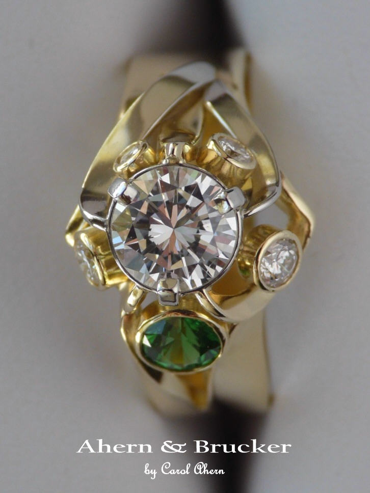 A 2 tone 18k hand fabricated diamond and Tsavorite