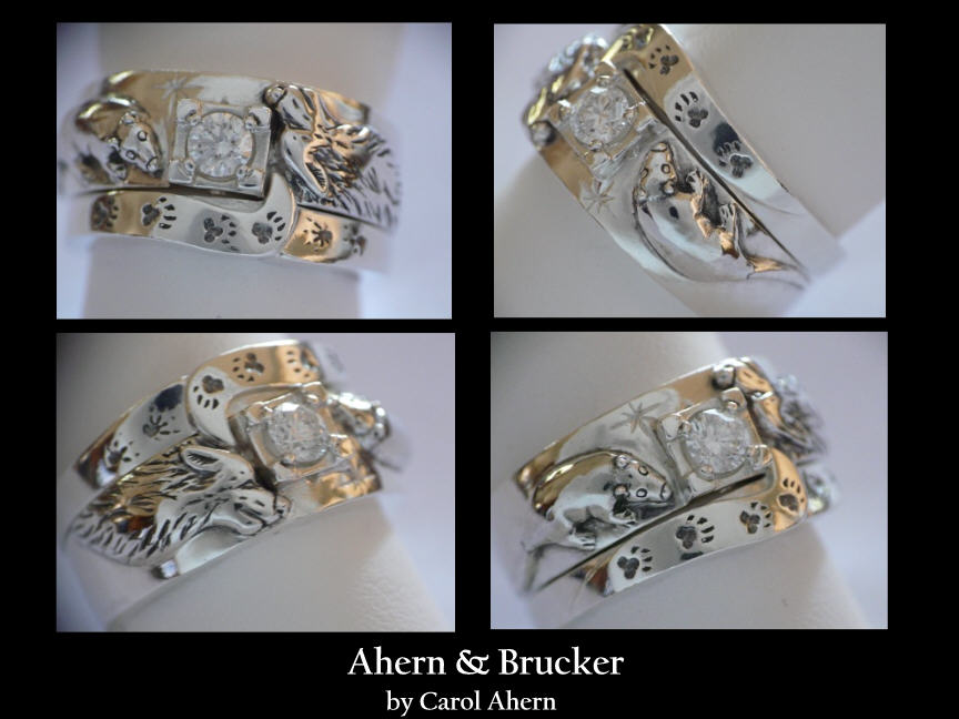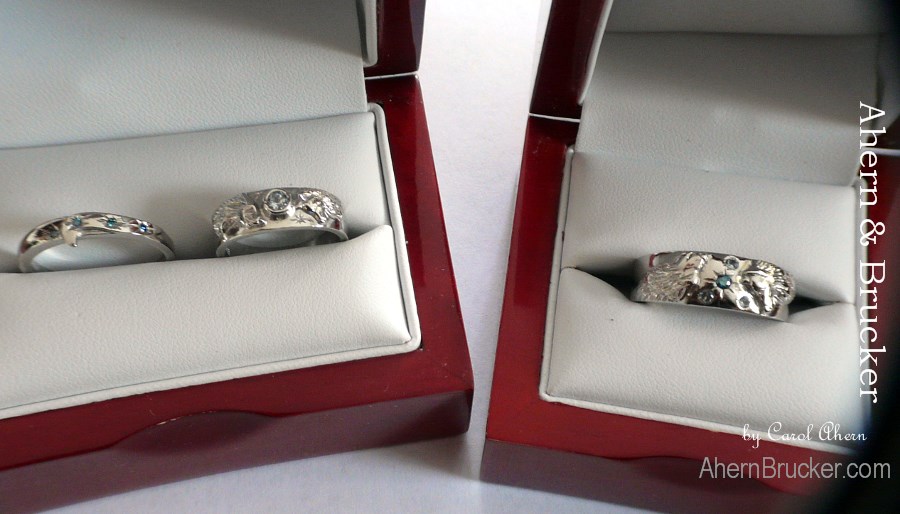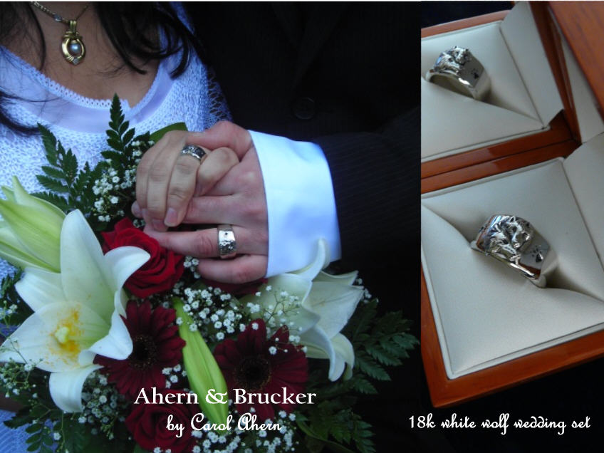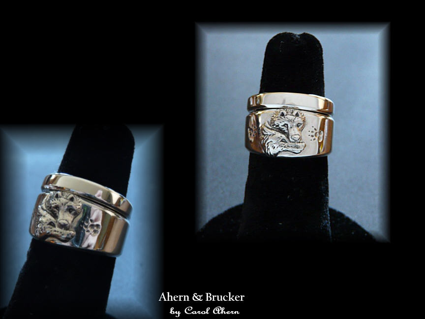 Fine Custom & Limited editions Wedding & Anniversary Rings by Master Goldsmith Carol Ahern Original Wolf wedding rings our growing WOLF WEDDING RING COLLECTION Each ring custom made to order, our original design, a modification to a original design or your own unique design, made by the hands of a Master goldsmith of nearly 40 years. from $250.00 to $20,000