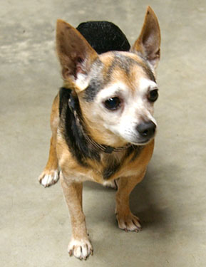 Chihuahua Male no Mix - brown, black & white 12 years old 7 lb. Good Loves sitting on your lap, not high-strung, loyal companion Sweet temperament, easy going, good with older kids and adults Small area is fine. He likes short walks and being outdoors but for only short periods of time because he likes to be cozy in his bed or curling up under the covers. |