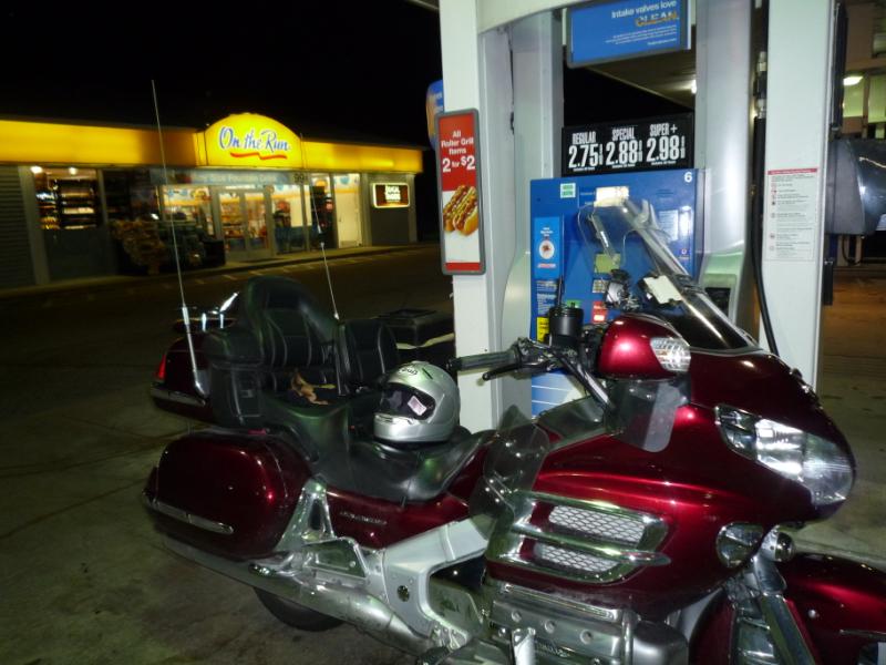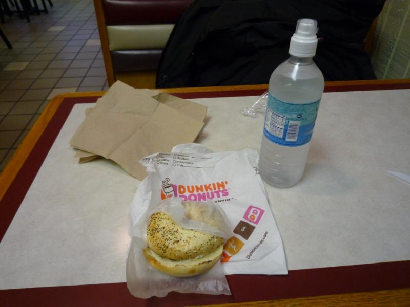 Funny thing about Rt495 in the middle of the night - I pretty much had the road to myself. In a few minutes I settled in and set the cruse control for 70 mph. That of course is the speed indicted by the GPS which is much more accurate than the bike's indicated 75 mph. This was the speed I did much of the ride. My route is not complicated, Rt495 and then get onto Rt90 (Mass Turnpike) and go west, all the way to Pennsylvania. I need to pin down this turn for certification so I stop at the Charlton service plaza to get a gas receipt. The next leg is a long one so a stop in the rest room is called for. On my way out someone made me have a quick breakfast. <grin> 2:54 am