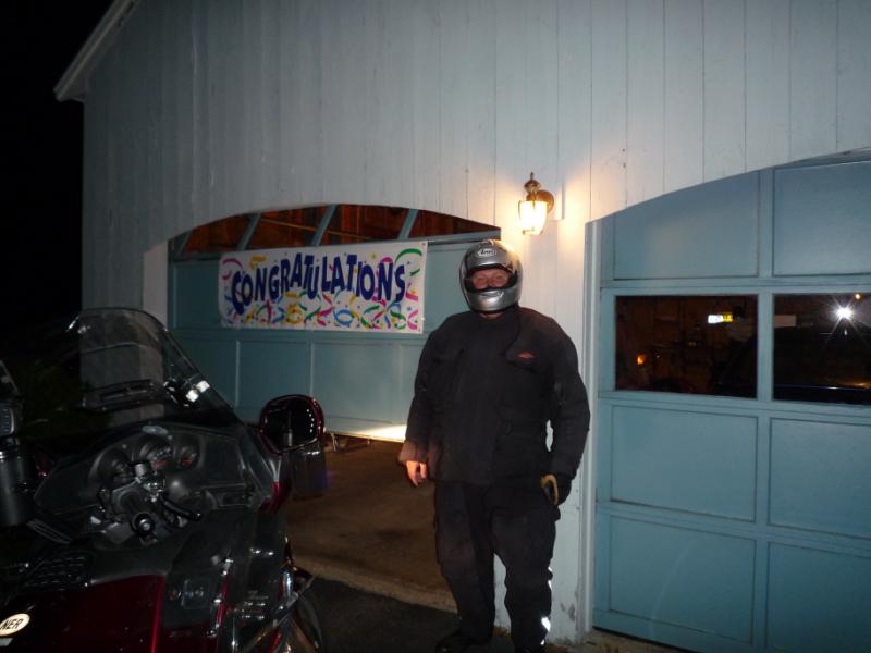 I was feeling terrific. I had completed the challenge, in the allotted time, and kept the required information for this ride to be certified as a Saddle Sore 1,000 by the Iron Butt Association. Pulling into my driveway there was a welcoming sign.
