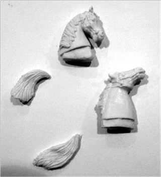 resin. Contains two horse heads & two horse tails to convert 54-mm