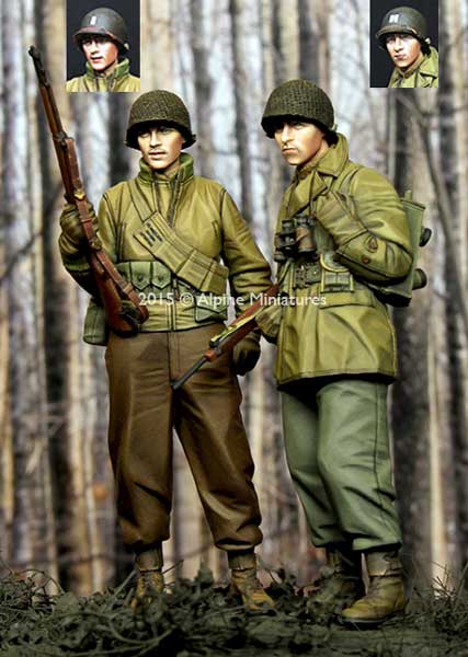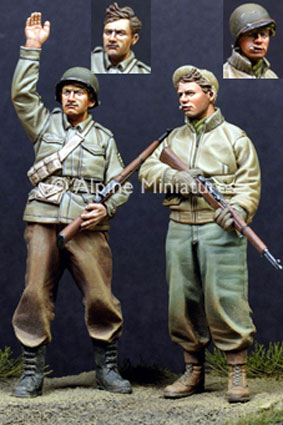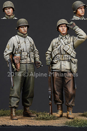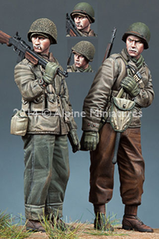 ALP35110 WW2 US Infantry Set 1/35 scale resin (contains 2 figures with  2 different heads each), sculpted by Krysztian Bodi , painted by Man-Jin Kim. $30.99