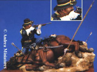"Shot Down" vignette of cavalry trooper & dead