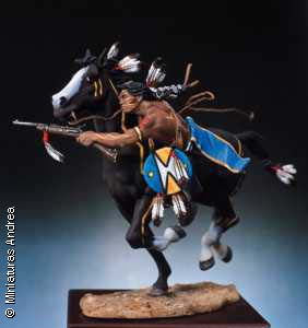 Sioux warrior, shooting carbine, mounted |