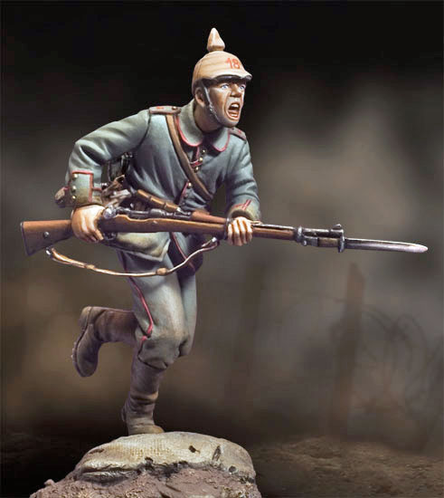 Charging German Infantryman, 1915 54-mm scale white metal kit,