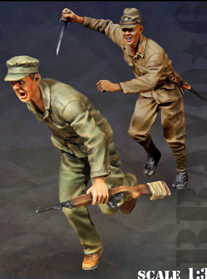 "BANZAI!!!" Peleleiu, 1944 two-figure vignette depicts USMC &