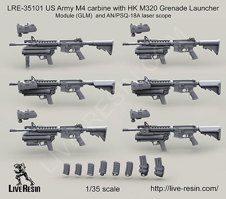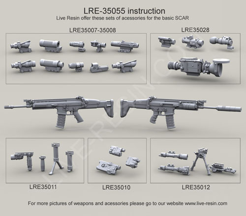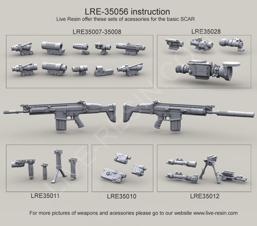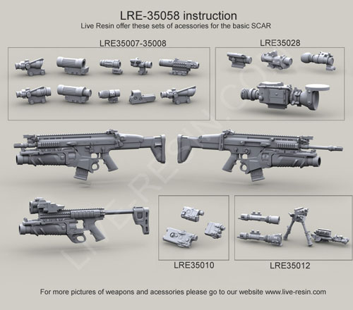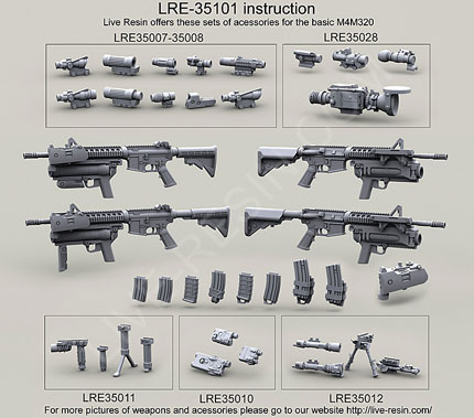 scale resin kit contains six weapons & parts as shown in upper photo. Compatible accessories for the M4 listed below: