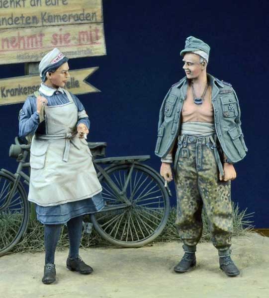 DD35018 German *DRK Nurse and Wounded SS NCO 1942-45 1/35th scale resin figure kit sculpted by Pawel Krasicki contains two figures. $31.99
