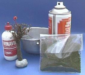 sieve (collander), white glue (Elmers) and a bag of Realgrass. |
